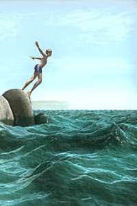 Il problema, se è passabile questo termine non perfettamente calzante, poiché si tratta di qualcosa che non è risolvibile, deriva in gran parte dal video allestito nella grande sala che accoglie il visitatore in mostra. Non c’è risoluzione, perché le 3000 esposizioni ultrarapide (2003, presentato fra l’altro alla terza edizione del Premio Carmen Silvestroni, a Forlì) alle quali assistiamo sono frustranti e frustrate. Il soggetto è presto detto: il Ghunter di cui sopra si trova su un gruppo di scogli e si prepara a tuffarsi in acque agitate. Si prepara e ancora si prepara. Fin quando solo l’avampiede poggia a terra, l’asse del corpo proiettato verso l’arco che dovrebbero descrivere i muscoli per impattare l’elemento primario che attende nervoso. Frame unico, ultrarapido, che blocca la scena come in certe immagini di Truffaut. E si ricomincia. Ma sempre in maniera fluida, senza soluzione di continuità, o quasi. Una ricezione favorita dalla “camera” che gira intorno agli scogli, si avvicina e si allontana, si alza e si abbassa, quasi corteggiasse il potenziale tuffatore come in una danza antica. O come in certi piani sequenza di Wody Allen, quando le parole fluiscono ancora più leggere e ironiche grazie proprio a questo tipo di movimento della macchina da presa. Non è sostenibile assorbire quell’idea di virtualità dell’azione tutta d’un fiato. Occorre aggirarsi intorno ad essa, magari compiendo il cammino inverso della ripresa. Tentare così di sfuggirle, in realtà assumere il ruolo del corteggiato, assecondandone la danza senza darlo a vedere.