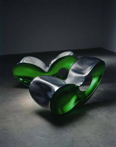 Ron Arad (Tel Aviv, 1951; vive a Londra) ama la sperimentazione sui materiali ed è affascinato dai metalli. Li piega, li manipola, dà loro una forma. Più forme. Caratterizzate da un affascinante trompe l’oeil, piacere per la vista e per il tatto. Non sarà una tentazione uniformemente diffusa ma, guardando la selezione di sedute Blu Void e Oh Void in esposizione presso la galleria Post Design di Milano, si ha voglia di toccarle. Le si accarezza, sfiorando la superficie in acciaio patinato dei due pezzi in edizione limitata e numerata datati 1988 della collezione One Off. E facendo scivolare la mano sulla superficie in alluminio anodizzato degli esemplari Blu Void (2006) argentei, verdi, neri, improntati all’energia plastica di forme concave e forme convesse, pieni e vuoti, materia colorata e… nulla.