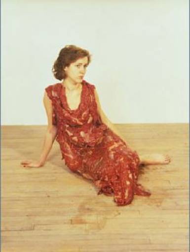 La nuova personale di Jana Sterbak (Praga, 1955; vive a Montréal) presenta opere recenti e lavori storici, con fotografie che documentano performance eseguite tra gli anni ‘70 e i primi anni ’90. Ascrivibili all’universo della Body Art risultano Vanitas Flesh Dress e Distraction, in cui l’artista indossa rispettivamente un vestito fatto interamente di pezzi di carne cuciti tra loro e una maglietta trasparente con peli apposti.