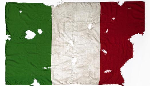 Mentre a Milano ha da poco aperto “La Terra Inquieta”, la grande mostra di Fondazione Nicola Trussardi a cura di Gioni, sulla tematica dell’immigrazione, a Casa Testori già era in scena un’altra esposizione politica, che tratta temi diversi in maniera più sottile, mescolando artisti provenienti da generazioni, produzioni e approcci artistici differenti. Il conflitto sociale/sanguinoso/crudo che abbiamo in Italia viene qui sviluppato da circa trenta artisti che raccontano violenze fisiche e psicologiche, delitti e omicidi, abusi di potere e di denaro, guerre e manifestazioni sanguinose, il corpo maltrattato, il traffico di droga… con una leggerezza particolare, per veicolare il messaggio a tutti. L’ironia drammatica nell’opera di Corrado Levi, ad esempio, è chiara nella grande stampa fotografica in cui l’artista è ritratto, da Beppe Finessi, con i vestiti dei migranti che sbarcarono a Otranto e che lui ha trovato sopra degli scogli; e ancora ironico Emilio Isgrò, qui in dialogo con Mimmo Paladino, che espone un’opera inedita in cui una testa senza personalità – che rappresenta dunque l’uomo universale – è imprigionata da rami di ferro che sembrano spire di un serpente, e Gianni Dessì. Isgrò presenta un suo lavoro storico: la Costituzione italiana cancellata. Ironia e dramma, ancora, in quelle poche frasi sopravvissute in cui il maestro suggerisce che “non sono proibite le associazioni segrete”, come suo segno di libertà.