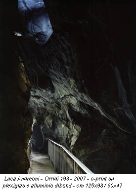 L’ignoto e il timore che questi luoghi generano vengono però sottomessi e addomesticati dalla fotografia di Andreoni. Il suo obiettivo scruta pazientemente ogni angolo della roccia, mettendone in evidenza venature e particolari poco visibili persino a occhio nudo.