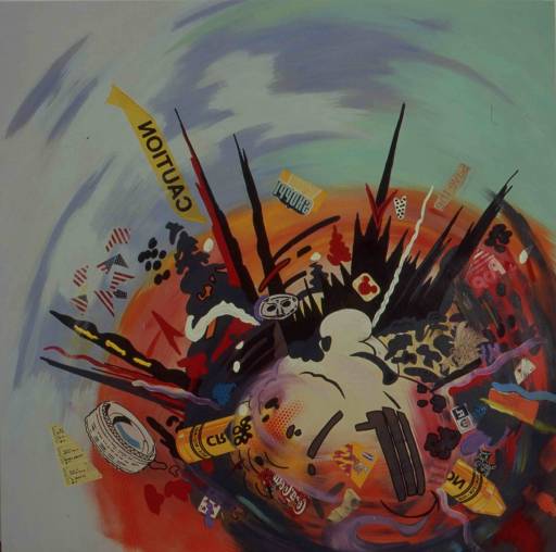 della mostra. La sua è una strategia personale fatta di loghi, immagini stereotipate,