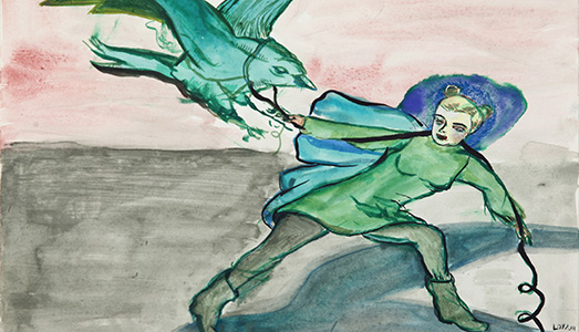 Questo è il milieu in cui si innesta la Nuova Scuola di Lipsia, che fiorisce con la fine del regime comunista e che prosegue il cammino inaugurato dal maestro Neo Rauch. Non più costretti a un determinato linguaggio espressivo, questi artisti scelgono comunque la pittura figurativa e le danno nuova vita sviluppando ognuno la propria poetica, i propri temi e il proprio stile. Alla mostra troviamo così opere molto diverse tra loro: atmosfere e creature mitiche e per certi versi tribali come quelle di Tilo Baumgärtel, acquarelli ispirati al mondo reale come quelli di Tom Fabritius, disegni geometrici con colori così intensi che sembrano laccati di Christoph Ruckhäberle. O ancora, situazioni apparentemente normali che si animano di dettagli surreali di Peter Bush o figure femminili in scenari per certi versi onirici di Rosa Loy.