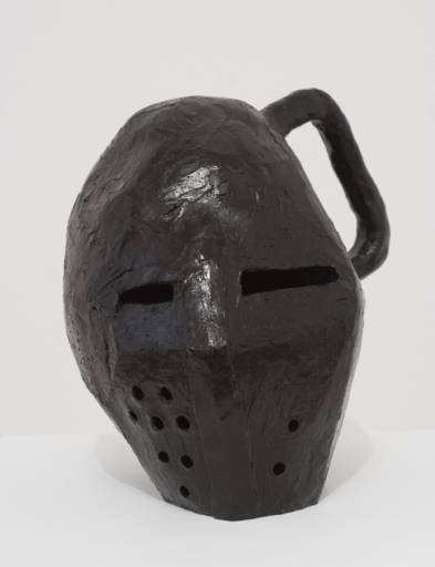 Pietre da leccare che pietre non sono, che invogliano lo spettatore a toccarle per accertarsi della loro consistenza, che riproducono forme di oggetti non artistici e assolutamente contemporanei, come La panca wellness. Lo stesso spirito plasma le sculture metalliche: un casco da motociclista, un elmo medievale, stilizzati, abbozzati, quasi consumati dal tempo; articoli pensati per cingere e proteggere il capo umano, che diventano simbolo di un’intelligenza creativa eterna.