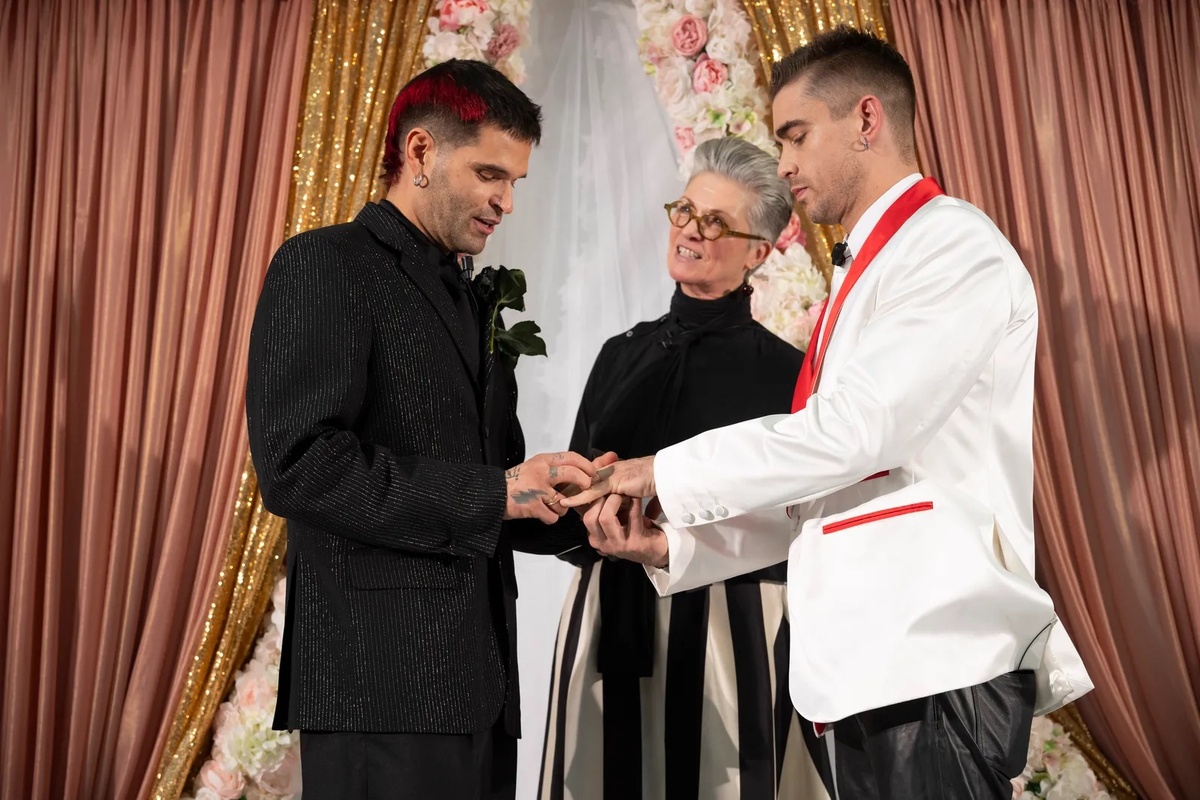 E’ stato lo show più chiacchierato e instagrammato della fashion week: la sfilata di JORDANLUCA si è conclusa con il matrimonio sulla passerella dei due designer Jordan Bowen e Luca Marchetto. La coppia di stilisti, legati anche nella vita da 16 anni, ha scelto la Milano Fashion Week per questo momento con tanto di rito civile, celebrante e i genitori presenti che hanno sfilato. Proprio l’amore come atto radicale, capace di trasformare ogni cosa, ha ispirato la collezione e il casting con una selezione di capi d’archivio. Come scrivono gli stessi creativi: «Per questa stagione, i nostri amici e i nostri affetti indossano i nostri tesori del passato, reinterpretandoli per dar vita al guardaroba iconico di JORDANLUCA. Questa stagione pone un accento particolare sullo stile british, celebrando le poche tessiture inglesi e scozzesi ancora rimaste, tra cui Harris Tweed e Marton Mills». Nuove interpretazioni del montgomery, dell’impermeabile in stile Barbour e del trench a doppia cintura dominano le linee, mentre le novità stagionali rispetto ai classici JORDANLUCA includono doppi colletti rivisitati, completi college, gli iconici pantaloni con zip Robin e il lancio ufficiale della mini bag Gotham.