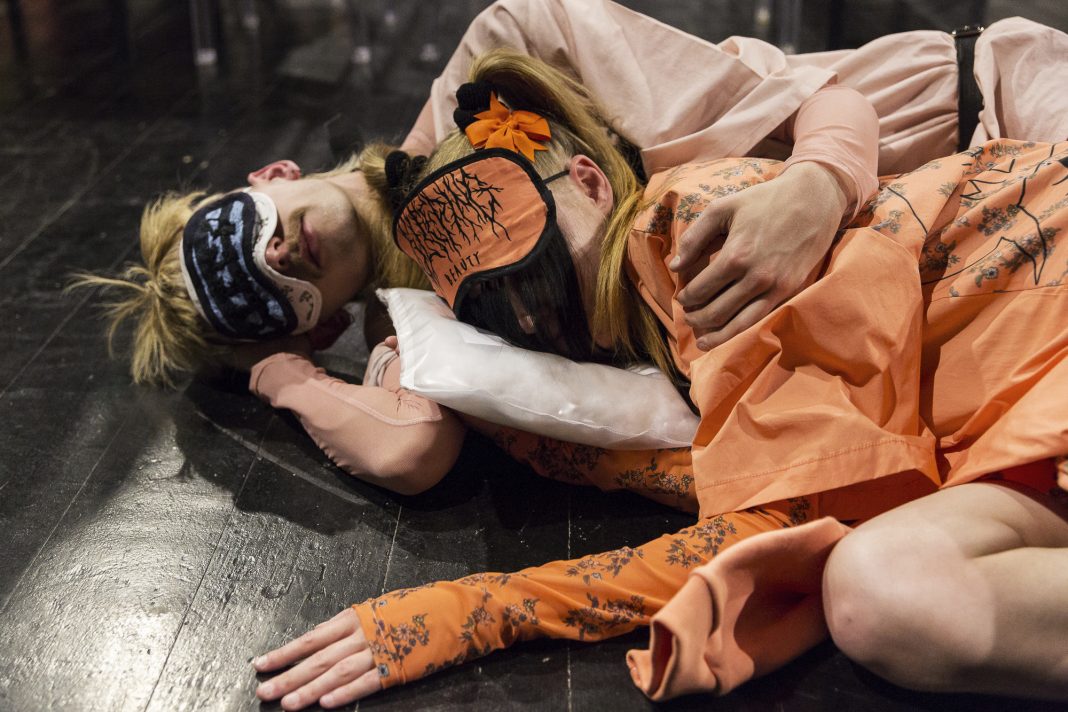 Qui non importa il genere né l’identità sessuale di chi indossa gli abiti: sono essere umani, conta solo questo. I tempi si dilatano per creare uno show di 30 minuti, i corpi si susseguono irrompendo con le loro identità – tutte diverse per genere, forma, provenienza, background. Eppure si ha l’impressione di trovarsi in un club, dinnanzi a una tribù che condivide immaginari, linguaggi e visioni: non sono manichini o corpi da ridisegnare, dunque, ma persone reali con cui risuonare e assieme alle quali dare vita a un’estetica potente. Come una band di 28 elementi, come un’orchestra. Corpi maschili/femminili e in transizione, corpi “parlanti” e fortemente comunicativi. I corpi politici di Barbara Bologna sfilano su una passerella che gira tutta attorno al pubblico disseminato in quattro aree, il front row si moltiplica lasciando a chiunque l’opportunità di vedere da vicino una parte e -allo stesso tempo- sottraendone un’altra creando complessità di visione. Gli abiti mostrano un proliferare di mondi paralleli srotolando una narrazione che corre dal luxury allo streetwear con contaminazioni dark punk anni 90’, fino alle ultime creature che –sfilando- cadono letteralmente ai piedi degli spettatori in un sonno profondo e improvviso dal quale non si risveglieranno fino a quando l’ultimo invitato non sarà uscito dal teatro trasformando l’evento in una durational performance. Sleep with me, sembrano dire i corpi a terra. E verrebbe davvero voglia di sdraiarsi per continuare questa connessione totale con loro e non spegnerne la visione.