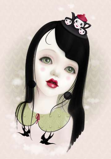Attualmente alcune mie opere sono in mostra a Parigi in una collettiva curata da Arts Factory. Si tratta di una mostra che raggruppa dieci giovani artisti, anche molto differenti fra loro. Quello che apprezzo davvero è però lo spirito globale della cosa: molto colorato e giocoso. Personalmente espongo la mia ultima serie di immagini: ho lavorato su ritratti di grande formato (70×100), il che è impressionante, perché i volti delle bambole risultano 4 volte più grandi rispetto a un viso umano. Inoltre ho curato moltissimo i dettagli: milioni di capelli, occhi enormi, piccoli animaletti. Il feedback che sto ricevendo in merito alle nuove immagini è buono: le gente mi dice che le trova scioccanti, ma al tempo stesso dolcissime. Finché riuscirò a colpire le persone, potrò dire di avercela fatta!