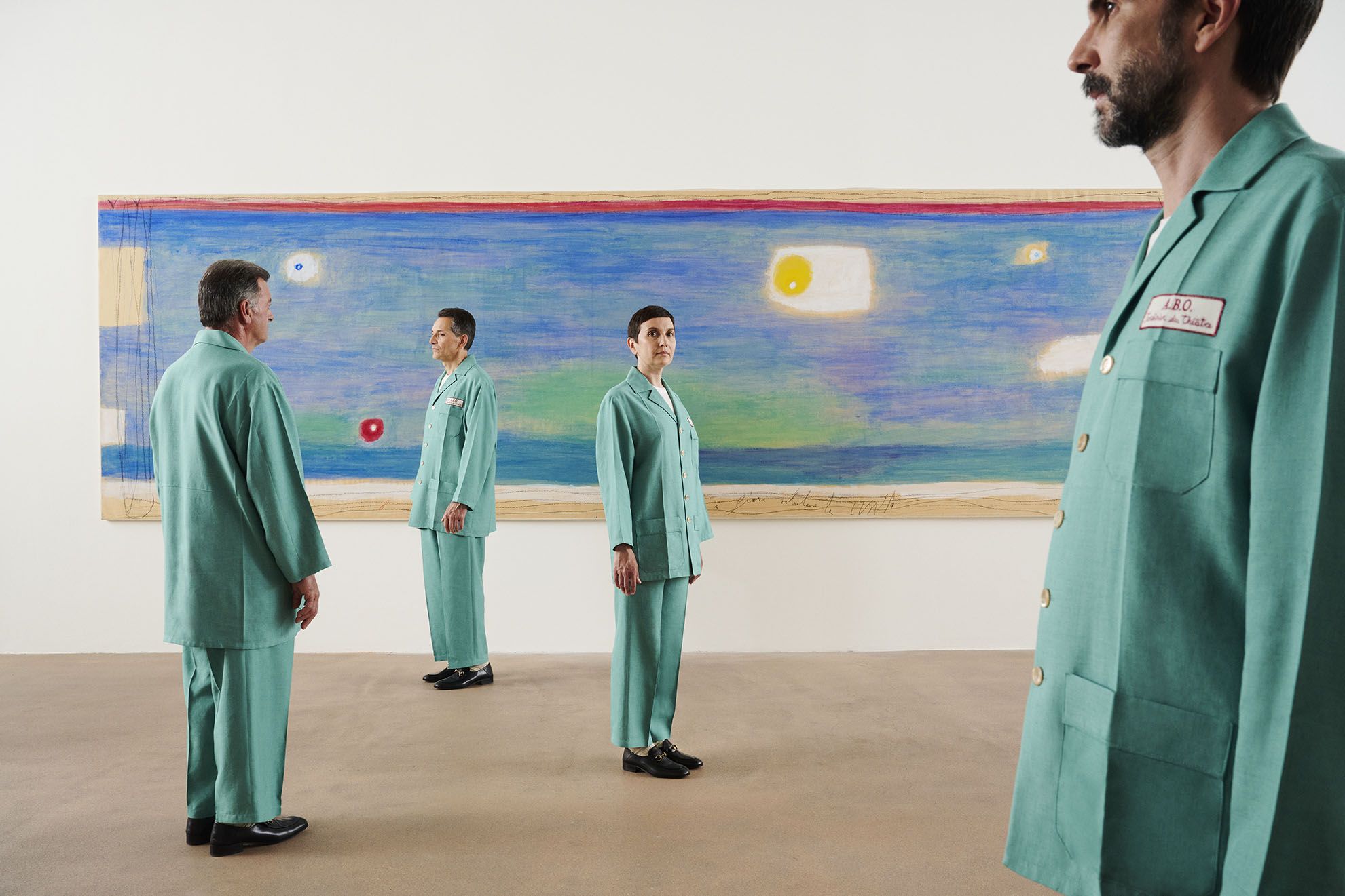 La mostra al Castello di Rivoli indaga la figura di uno dei più importanti storici dell’arte, critici e curatori contemporanei e raccoglie opere d’arte, documentazione di allestimenti, materiale d’archivio e una selezione di materiali televisivi concessi da Rai Teche. La maison, che con l’arte contemporanea ha un dialogo privilegiato, ha appositamente realizzato le divise destinate agli “angeli custodi” della mostra, cioè il personale del Museo che accoglie i visitatori nelle sale e custodisce le opere esposte nel “teatro” della mostra. Come dei giardinieri di un parco immaginario, gli abiti verde salvia dei custodi, chiamati “jardiniers du théatre”, segnalano il percorso della mostra in un accompagnamento creativo che ribalta il tradizionale rapporto tra museo e sponsor. Qui il main sponsor collabora alla scena della mostra, valorizzando i lavoratori essenziali ma spesso invisibili del mondo dell’arte.