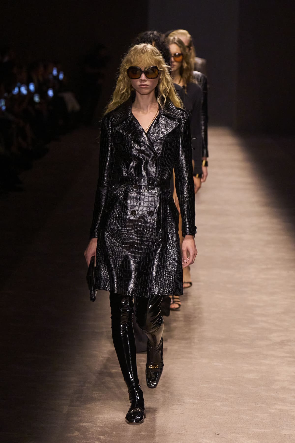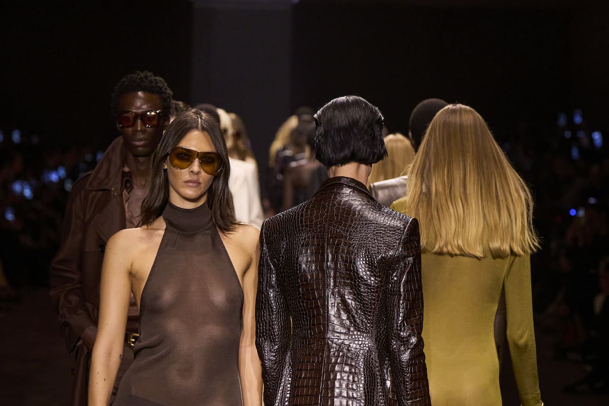 Per questo motivo Tom Ford è arrivato a sfilare alla Milano Fashion Week. Lo show, dai look all’immaginario, ha sicuramente reso omaggio al suo fondatore con l’obiettivo di rendere sexy il daywear, tra abiti, completi, tailleur pantaloni e pelle stampata cocco, tacchi a spillo e mocassini lucidi. Un’estetica seducente dove maschile e femminile sono un continuum, tra i diversi riferimenti creativi cari a Tom Ford.