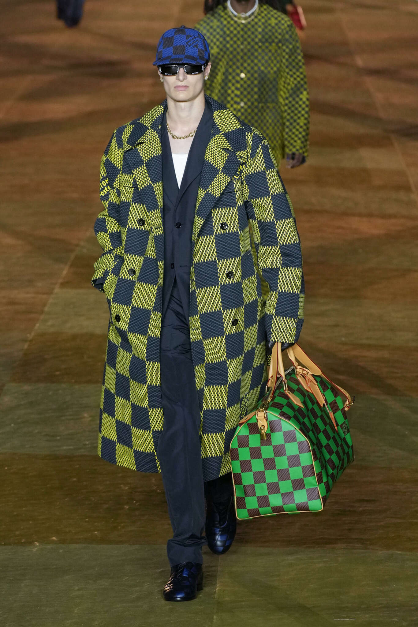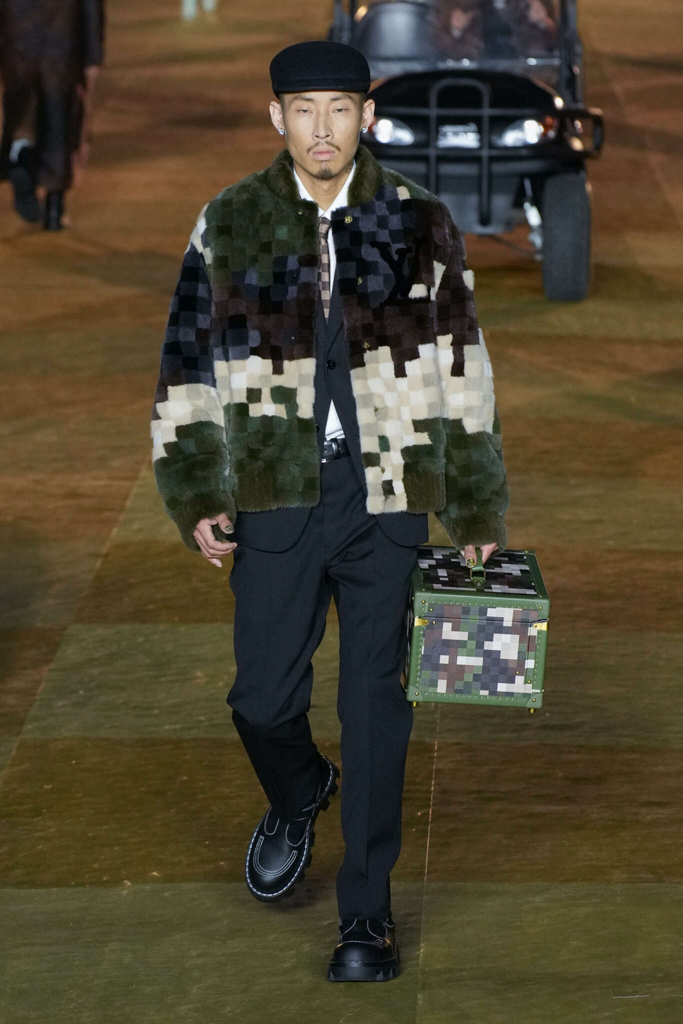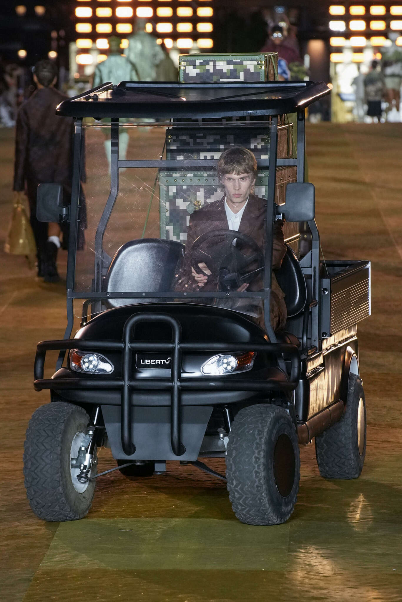 Non solo in prima fila la lista dei personaggi continua in passerella dove si sono visti anche il designer Stefano Pilati e il cantante Pusha T, che hanno sfilato a piedi o su piccole golf car cariche di bauli e borsoni contraddistinti dal nuovo logo. Un debutto definito “faraonico” per l’impiego di risorse e il coinvolgimento di celebrities, dove è forse mancato il desiderio di lanciare un contenuto culturale o sociale che ci aspettava da un marchio così rilevante. E’ anche vero che questo è solo il primo capitolo di una collaborazione che vedremo come si evolverà nelle prossime stagioni.