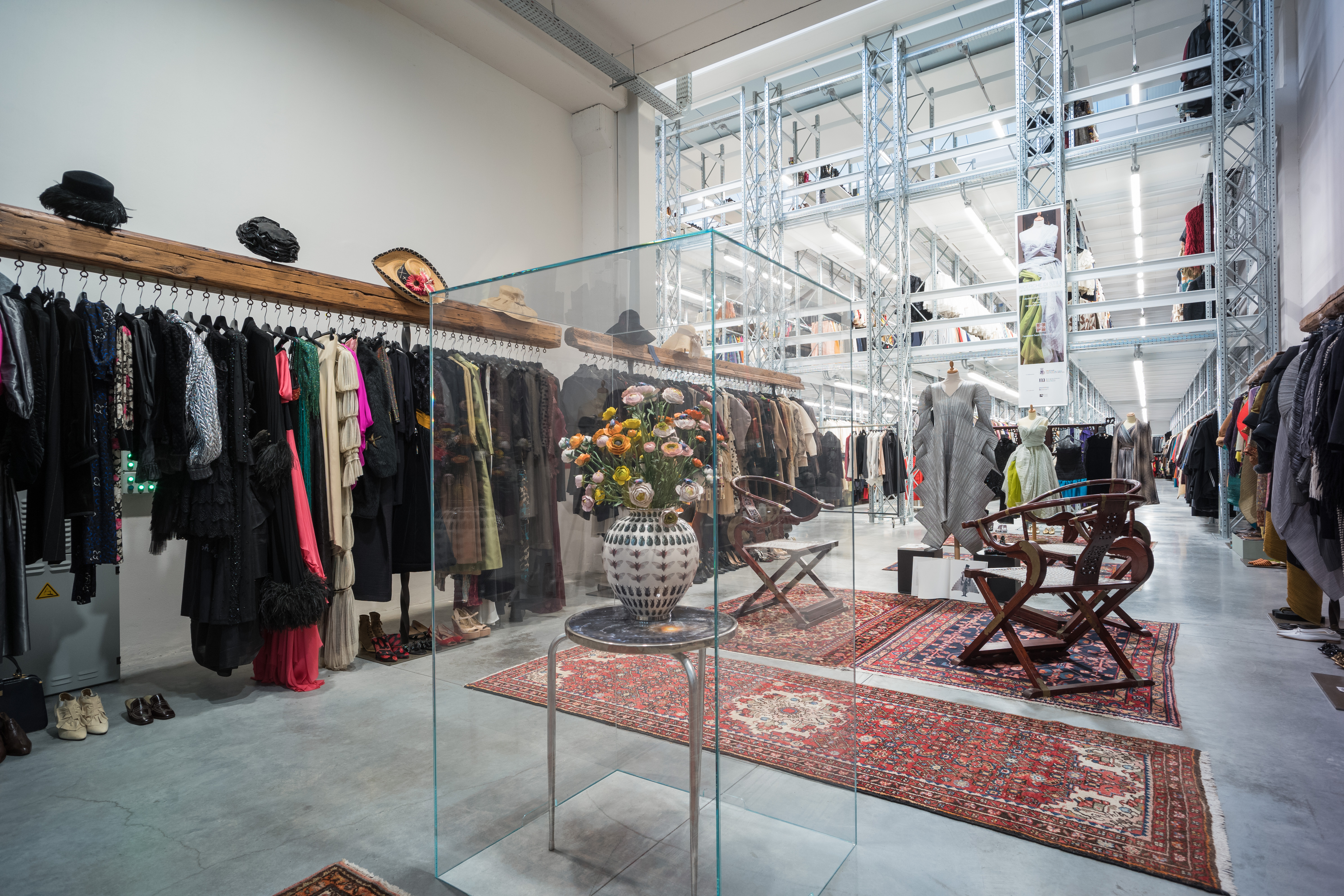 La maggior parte dei capi appartiene agli anni Ottanta, Novanta e Duemila, ma la collezione continua a espandersi con pezzi contemporanei, selezionati per la loro forza espressiva. Accanto ai grandi maestri del Made in Italy, da Walter Albini a Versace, trovano spazio i designer giapponesi — Yohji Yamamoto, Rei Kawakubo, Issey Miyake — e i protagonisti del minimalismo concettuale come Margiela, Helmut Lang e Ann Demeulemeester. Nell’archivio convivono inoltre opere d’arte contemporanea di Nicola Samorì e dei ceramisti Bertozzi & Casoni in dialogo con le creazioni più iconiche della moda internazionale. È un ambiente in continua evoluzione, modellato dal gusto eclettico del suo fondatore.