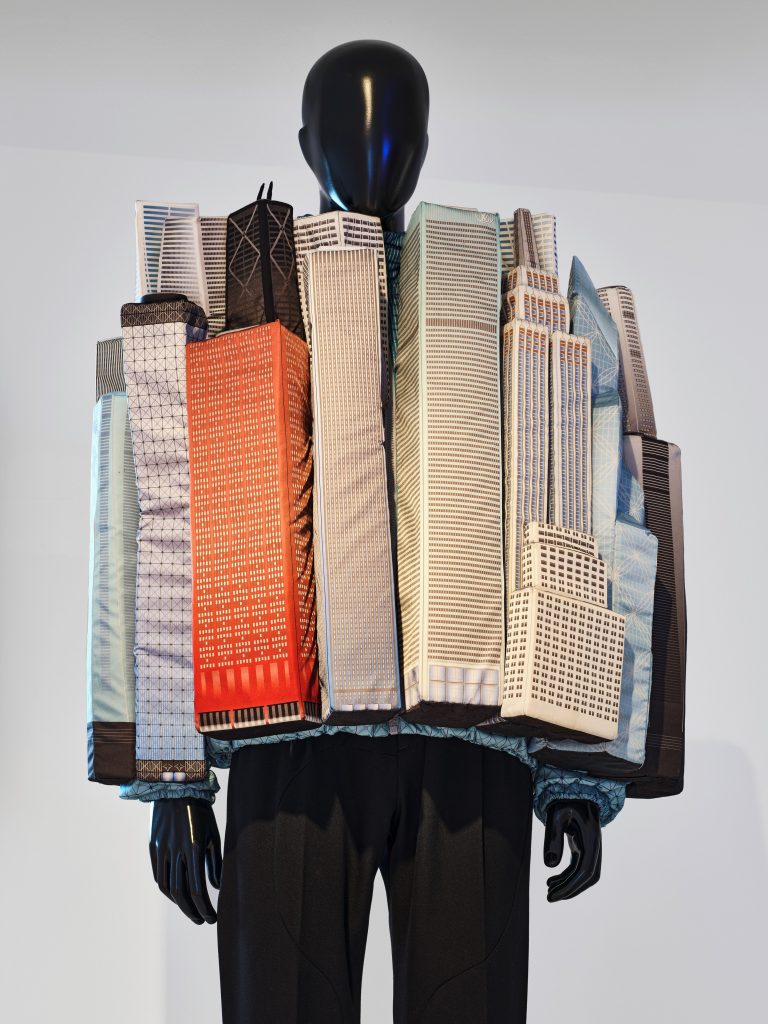 Per concludere, numerosi sono anche i riferimenti all’architettura, come nel caso del Parliament Show di Balenciaga della Primavera/Estate 2020, un modello architettonico e un abito emblematico. Uno stretto legame con l’architettura che emerge anche attraverso la collaborazione tra OMA, lo studio fondato da Rem Koolhaas, e Prada: a questa linea di ricerca si collega la giacca-skyline disegnata da Virgil Abloh, ispirata a celebri grattacieli e presentata per la prima volta durante la sfilata Menswear di Louis Vuitton Autunno/Inverno 2021/22, allestita in un setting che rimanda all’architettura di Mies van der Rohe.