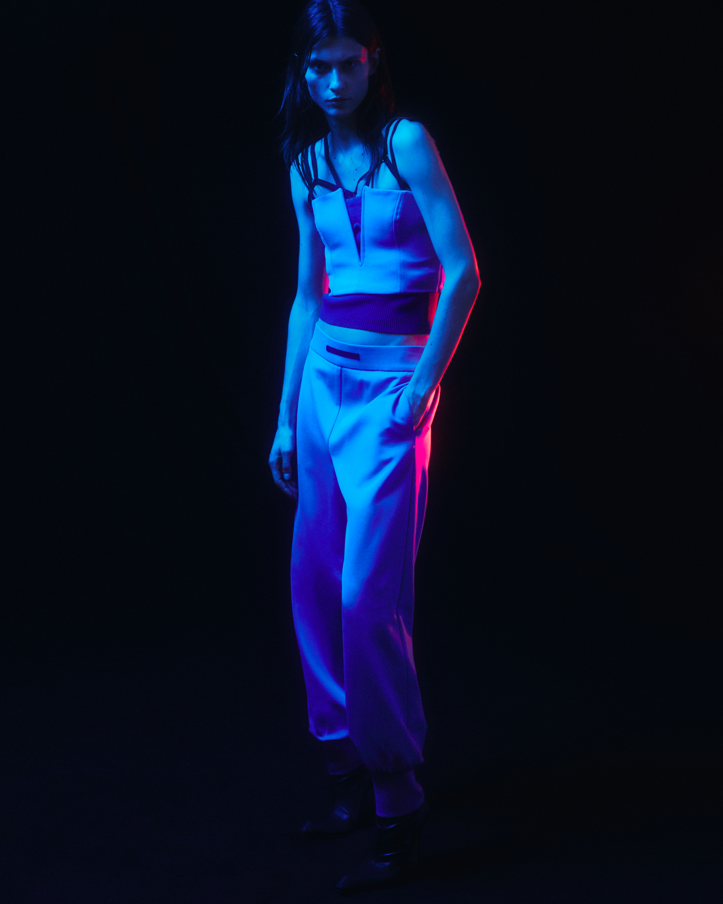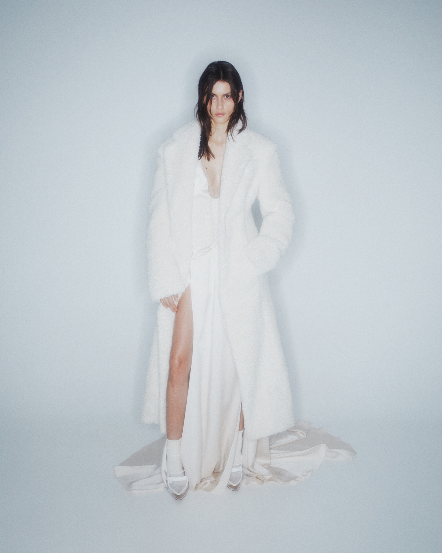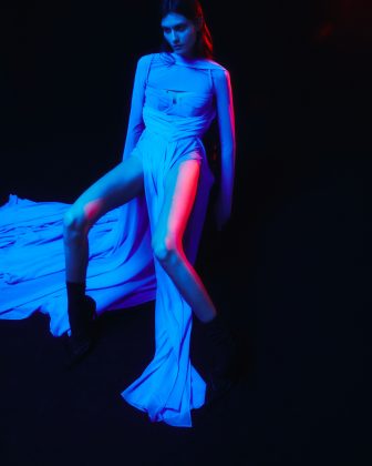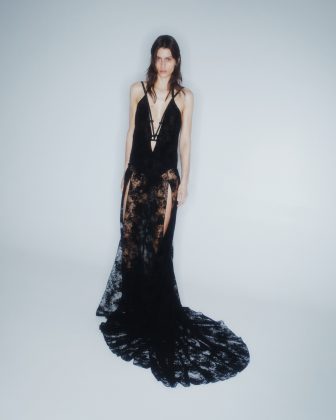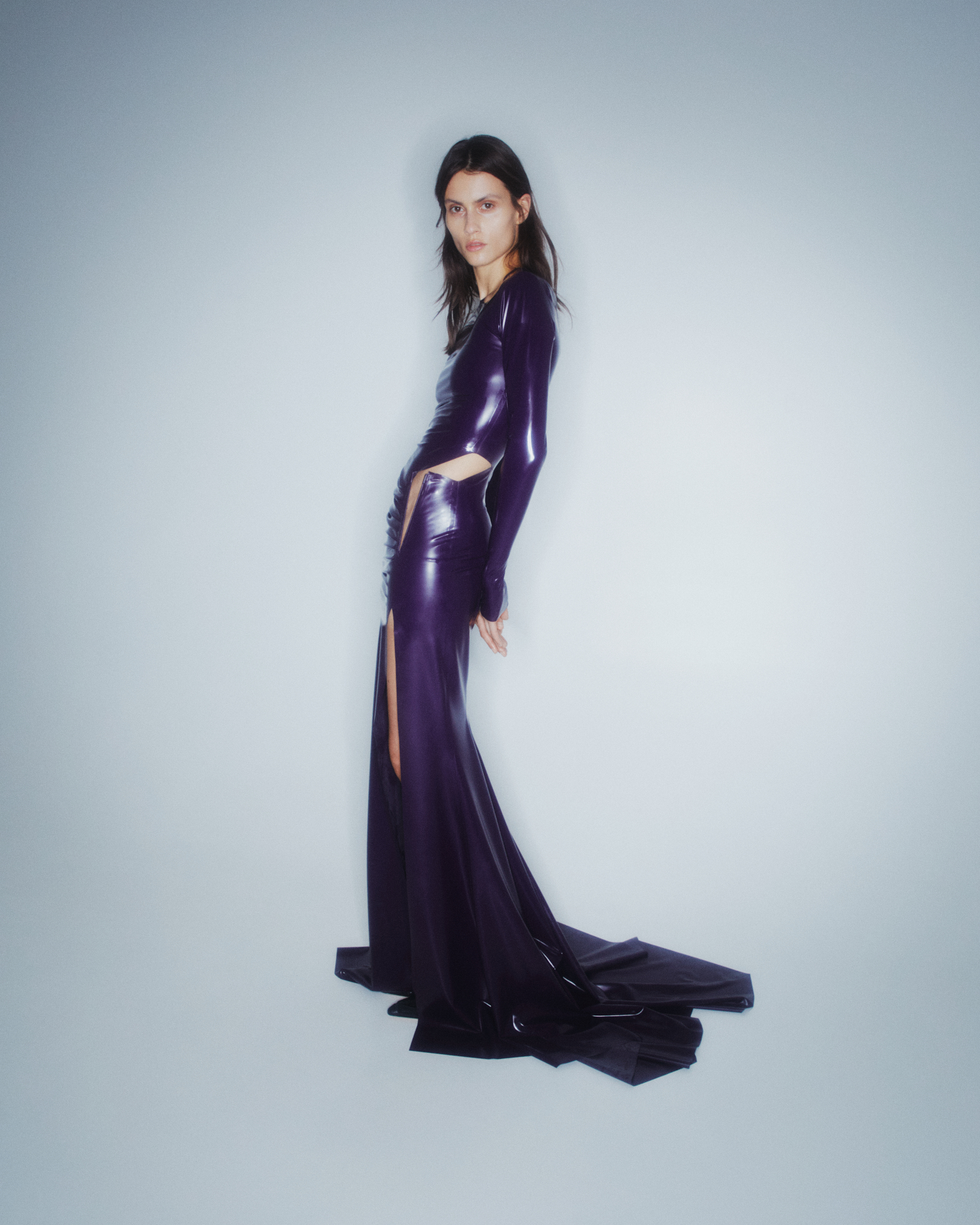 La collezione FW23 di ALESSANDRO VIGILANTE, giunta all’ ATTO VI, continua la sua ricerca sul corpo in movimento. Alessandro Vigilante, classe 1982, di origini pugliesi, focalizza il suo percorso nell’intreccio costante tra la moda e la danza, cardini primari della sua ispirazione e del suo linguaggio espressivo. Con un passato da danzatore professionista, continua ad approfondire questo mondo che intreccia con la sua formazione nella moda (si laurea allo IED di Milano ) ricevendo subito importanti riconoscimenti. Poi lavora a lungo per importanti brand come Dolce & Gabbana, poi a Roma, da Gucci, al fianco di Alessandro Michele, e infine ancora a Milano con il progetto Philosophy di Lorenzo Serafini. Da questo sviluppo professionale, estremamente intenso e gratificante, nasce l’esigenza di comunicare la propria personale visione dello stile e della femminilità̀, con il lancio del brand ALESSANDRO VIGILANTE, inaugurato dalla Collezione ATTO I. La nuova collezione ripercorre i tratti distintivi del brand: la sartorialità maschile tagliata da capi iper femminili, definiti da grafici cut-out, il rigore che incontra l’erotismo, la pulizia delle linee, i volumi scultorei realizzati con materiali tecnici come lo scuba, le trasparenze dei tessuti tipici della corsetteria, volumi scostati e altri attaccati al corpo, second skin, l’immancabile natural vegan rubber che dalla prima stagione esercita grande fascinazione per il creative director. La palette colori, fedele al nero, ivory e light pink, capisaldi riconfermati, si rinnova attraverso l’inserimento del cornflower blue, del citrus yellow e dell’olive green. Tra le novità è l’introduzione della stampa di ispirazione termografica su velluto panné stretch. I look sono completati dal Sylvie Loafer e dal Sylvie Thigh High boots, in onore della famosa danzatrice Sylvie Guillem, dalle doti straordinarie.