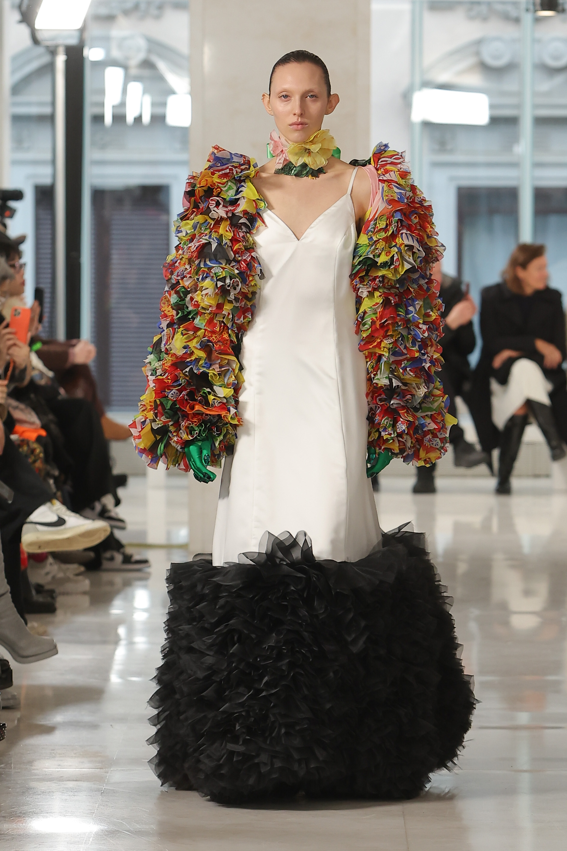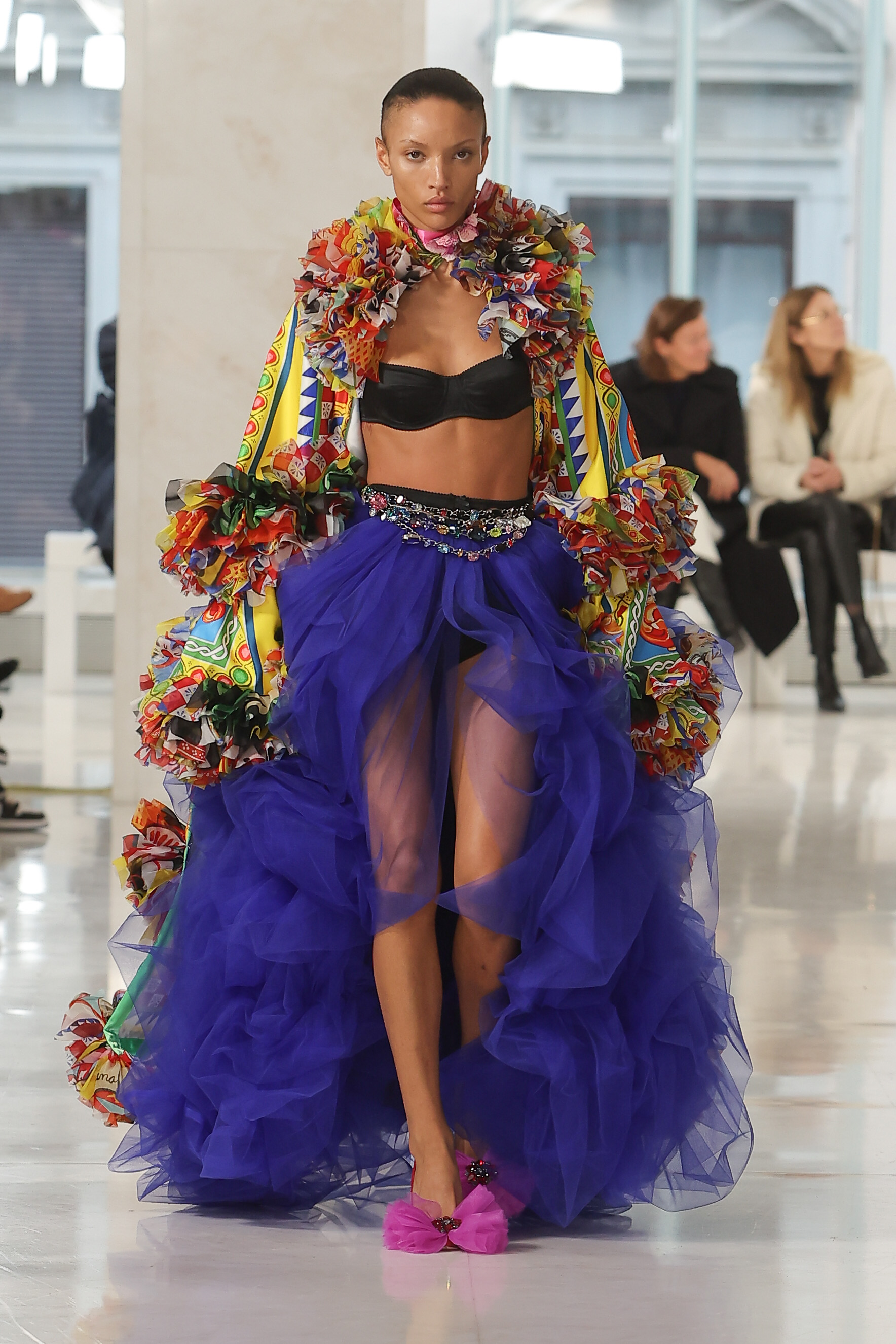 Una moda tutta costruita intorno alle forme, all’organza e al colore quella di Tomo Koizumi, designer giapponese che ha sfilato a Milano grazie al progetto voluto da Domenico Dolce e Stefano Gabbana per supportare una nuova generazione di talenti creativi. Grazie alle costruzioni particolarmente scenografiche e stravaganti il designer ha conquistato numerose star del calibro di Lady Gaga e Bjork, tanto per citarne alcune. Caratterizzano la sua ricerca le scelte cromatiche vivaci, lo studio meticoloso dei volumi, la teatralità delle forme, i dettagli sartoriali e l’attenzione alla body positivity. Per questa nuova collezione – supportata anche nella realizzazione da Dolce & Gabbana -il designer giapponese da una parte ha tratto ispirazione dagli archivi del brand, dalla corsetteria tradizionale agli iconici tubini, dall’altra si è mantenuto fedele al suo Dna che gioca sui volumi over in organza iper colorata: un vero incontro tra due identità estetiche molto forti. Un segnale importante di supporto a un brand emergente che ha avuto modo di sfilare a Milano davanti a un pubblico internazionale di addetti ai lavori.