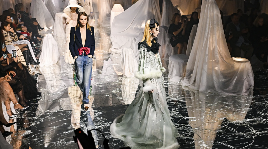 Quella di John Galliano per l’Haute Couture Primavera-Estate 2024 è non solo la sua ultima sfilata per Maison Margiela, ma . Teatrale, scenografica, ispirata alle atmosfere della Parigi degli anni ’20 del secolo scorso, ha fatto sfilare corpi enfatizzati dagli abiti attraverso corsetti dalla forma estrema, abiti dai fianchi imbottiti, abiti in pizzo che vogliono svelare, in modo erotico, il corpo. Il tutto condito da un make-up vitreo, effetto bambola di porcellana.