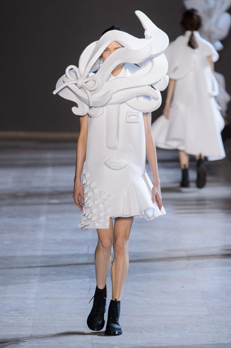 La loro SS16, per esempio, si presenta come una sfilata di sculture, tutto in bianco, la modella viene per lo più nascosta. L’ispirazione, appunto, al Cubismo è sintetizzata in abiti scultura enfatizzati dal colore bianco. Nel 2014 avevano tratto ispirazione invece da Van Gogh, una collezione che li inserisce nuovamente in quella stretta cerchia dei visionari, con fiori e colori che rimandano ai dipinti, paesaggi e sentimenti espressi dal maestro olandese. Nel 2015, dunque, presentano una collezione con abiti e cornici, a inquadrare perfettamente il loro punto di vista, che mescola, moda, arte, riferimenti pittorici e scultorei: le modelle, dopo aver fatto la passerella, vengono svestite e gli abiti appesi sulla parete retrostante la performance.