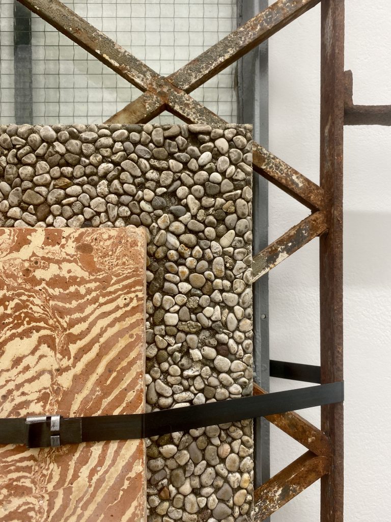 Dal 2019 Andreas Fogarasi (Vienna, Austria, 1977) indaga i processi delle trasformazioni urbane con la serie “Nine Buildings, Stripped”, dedita a svestire edifici cittadini abbandonati da frammenti di materiali superficiali, ritagliati in maniera estremamente chirurgica. Per la sua prima mostra personale da Quartz Studio a Torino, chiamata informalmente dall’artista “Turin Stripped”, Andreas Fogarasi osserva il territorio del capoluogo piemontese e crea cinque installazioni scultoree site-specific che diventano veri e propri ritratti astratti di alcuni degli edifici che più di altri hanno catturato la sua attenzione. I suoi “pacchi di materiali”, legati insieme da fasce di ferro, diventano una sorta di resoconto di quei luoghi storici inattivi in attesa di essere valorizzati o che presto non esisteranno più, perché in via di demolizione.