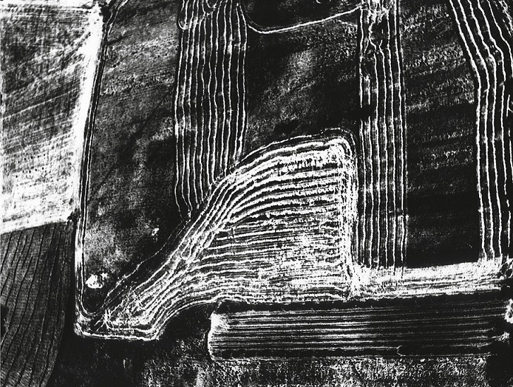 Oggetto di rappresentazione sono i campi coltivati che, come distese di nuvole, si stagliano sul piano secondo un tentativo di astrazione che si spinge fino a richiedere all’agricoltore un intervento di aratura sui terreni, a modificarne la morfologia per un fine artistico. Tale è la purezza dei pieni sui vuoti da rendere l’apparizione isolata delle case un elemento estraneo e, al contempo, partecipe.