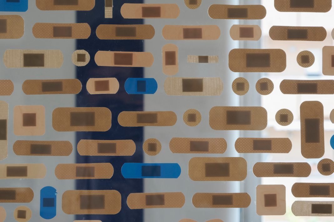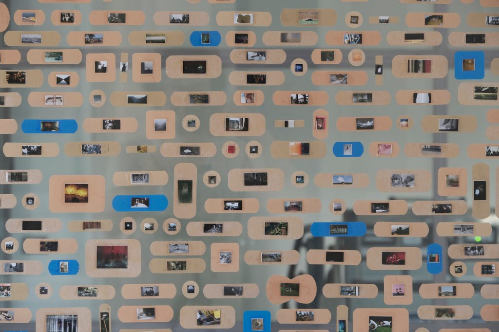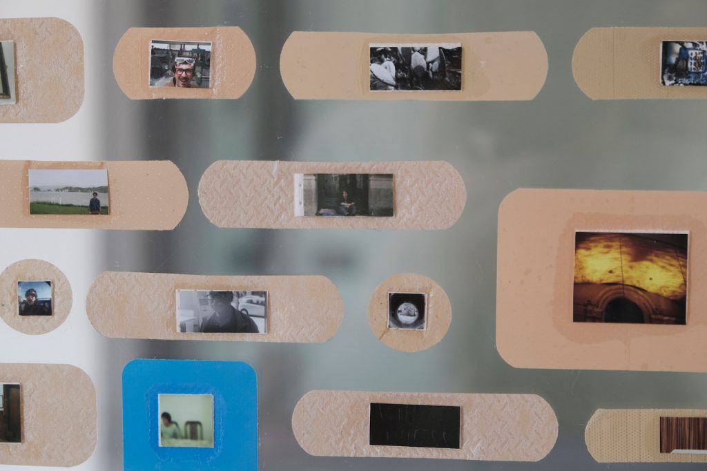 Ragionando su ciò che il tempo ha reso invisibile, ma che è ugualmente avvenuto l’opera Cerotty tales di Adriano La Licata colloca in un unico punto sulla linea del tempo le proprie azioni performative, scene vernacolari e opere fotografiche passate all’interno di cerotti dalle più disparate forme. Ogni azione passata si trasforma in una cicatrice rimarginata, qui incorniciata da cerotti che malinconicamente tentano di bloccarla fin quando è ancora fresca, affinché averla vivida alla memoria, ancora visibile e consultabile in una particolare forma di portfolio. In un luogo contenitore di linguaggi e idee, i due artisti interpretano il mondo e ne evocano modalità di manifestazione in forme totalmente personali, in cui sono conservate poetiche mature e capaci di suscitare anche solo per brevi istanti le infinite sfaccettature del vivere.