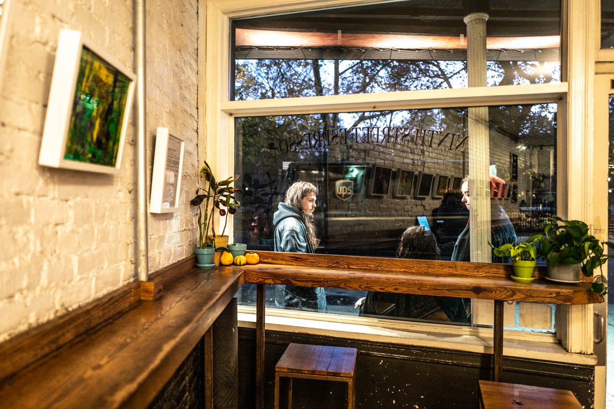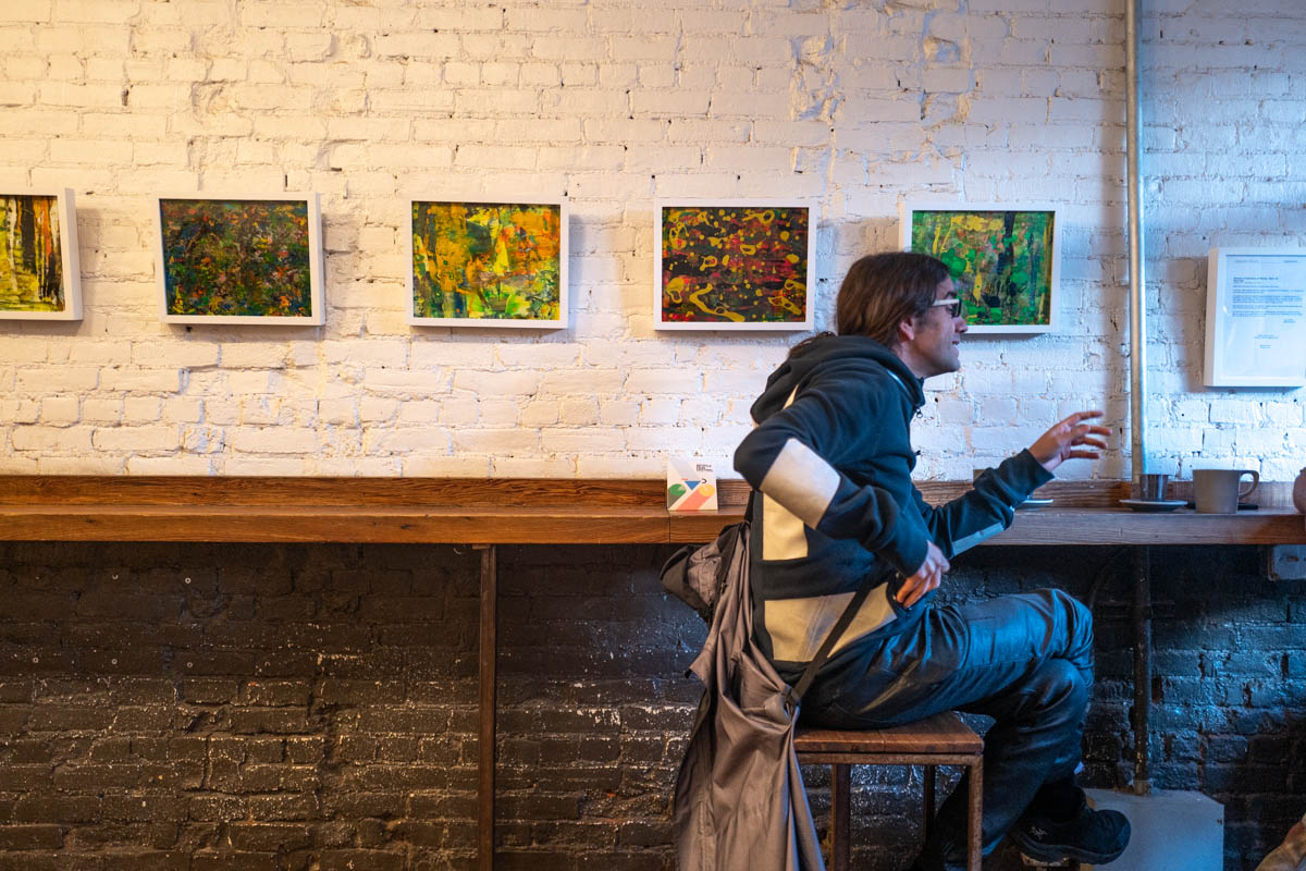 A New York, il 9th Street Coffee è un’istituzione dell’East Village e Mark Roth, il barista che sta nella location della Nona Strada, è anche il curatore della galleria che sta nella sede sulla Decima Strada, proprio a ridosso di Tompkins Square Park, il cuore pulsante di Alphabet City. La pratica artistica di Roth, pittore affermato formatosi all’Art Institute of Chicago (BFA) e alla Transart/Plymouth University (MFA), si distingue per l’indagine approfondita sulle sfide dell’Antropocene, l’attuale era geologica segnata dall’impatto umano su scala planetaria. Attraverso la pittura, Roth esplora tematiche come il rewilding, l’eco-lutto, l’etologia e il potere dell’arte come strumento di ricerca e consolazione.