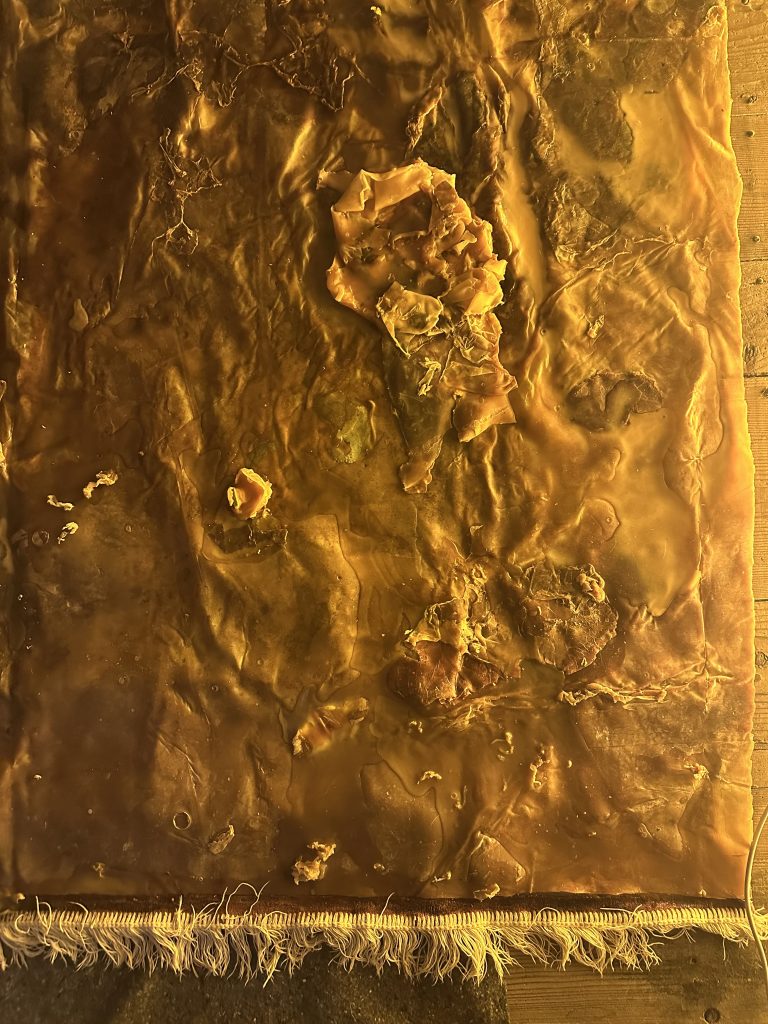 L’ingresso è affidato a Vestigia di Giorgia Contin e Romina Dorigo, un’opera che ribalta la funzione introduttiva dislocando il visitatore, imponendo al corpo un primo adattamento e allo sguardo un assestamento che incrina la parvenza iniziale di orientamento. La materia si rivela come soglia autonoma, tattile, capace di accogliere e respingere nel medesimo gesto. In questa ambivalenza, tra presenza e mancanza, radice e frammento, si annida il primo vero confine della mostra, quello tra ciò che crediamo di vedere e ciò che siamo costretti a rivedere.