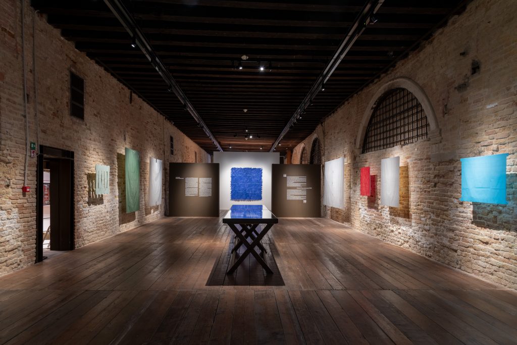 Negli spazi stratificati e quasi teatrali di Palazzo Fortuny, queste superfici diafane assorbono la luce veneziana, la riflettono, la disperdono, la rendono instabile. L’architettura storica diventa parte attiva del lavoro, così come il corpo del visitatore, chiamato a muoversi tra pieghe e trasparenze.