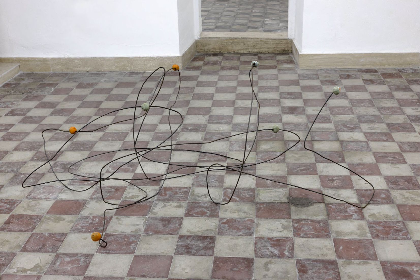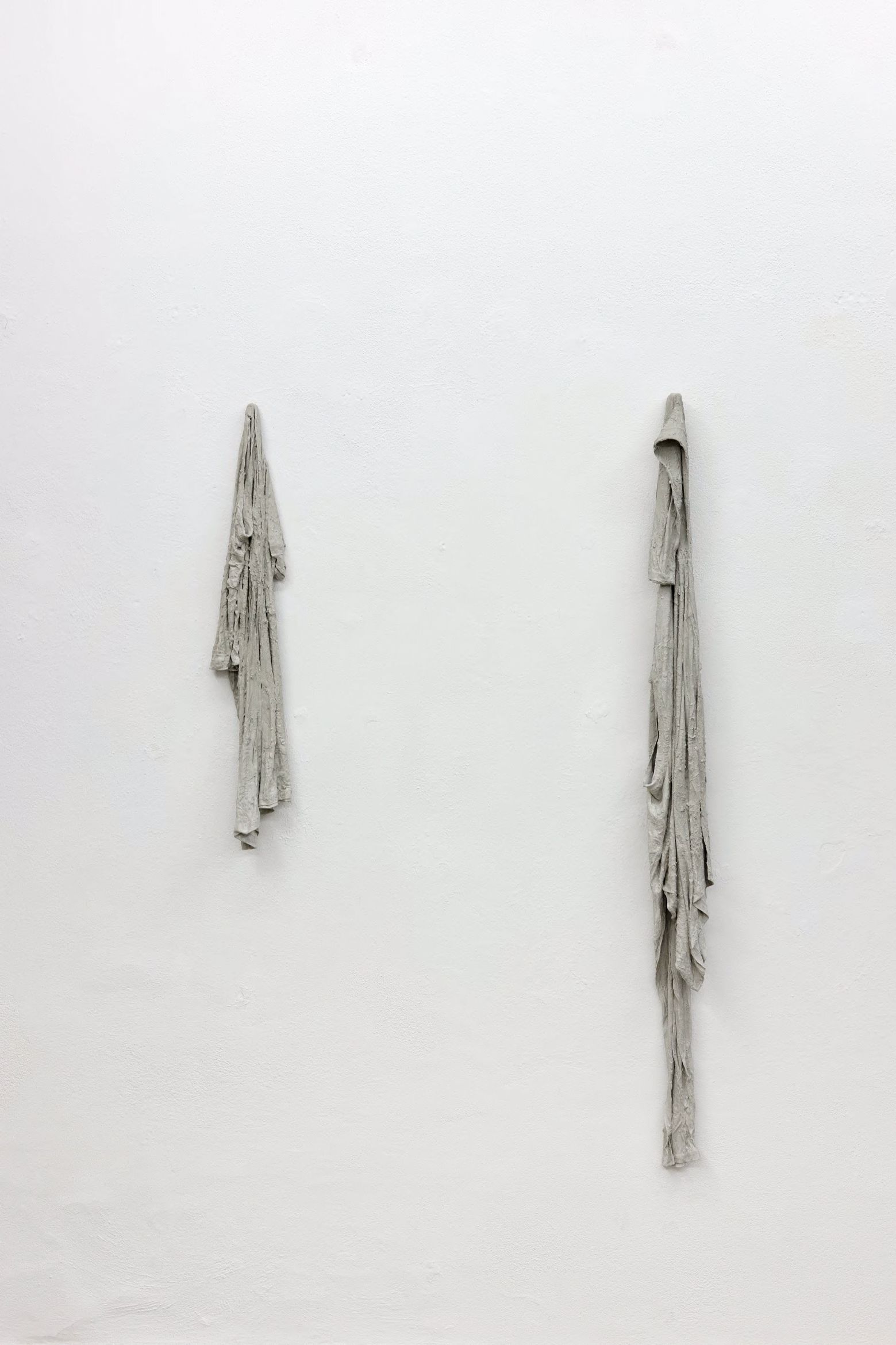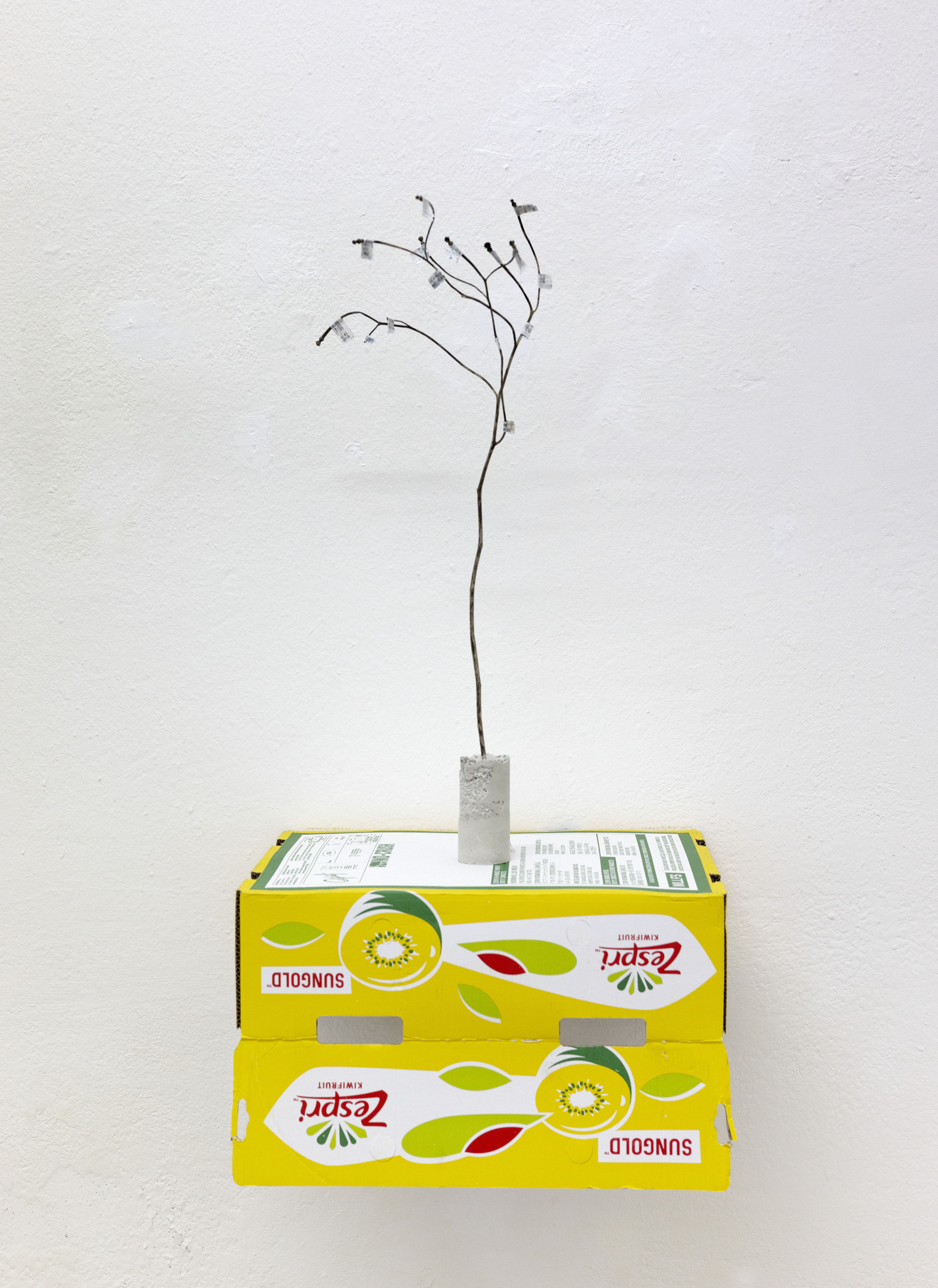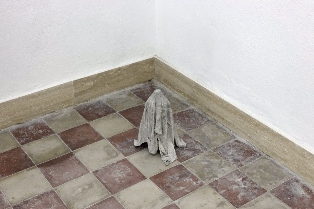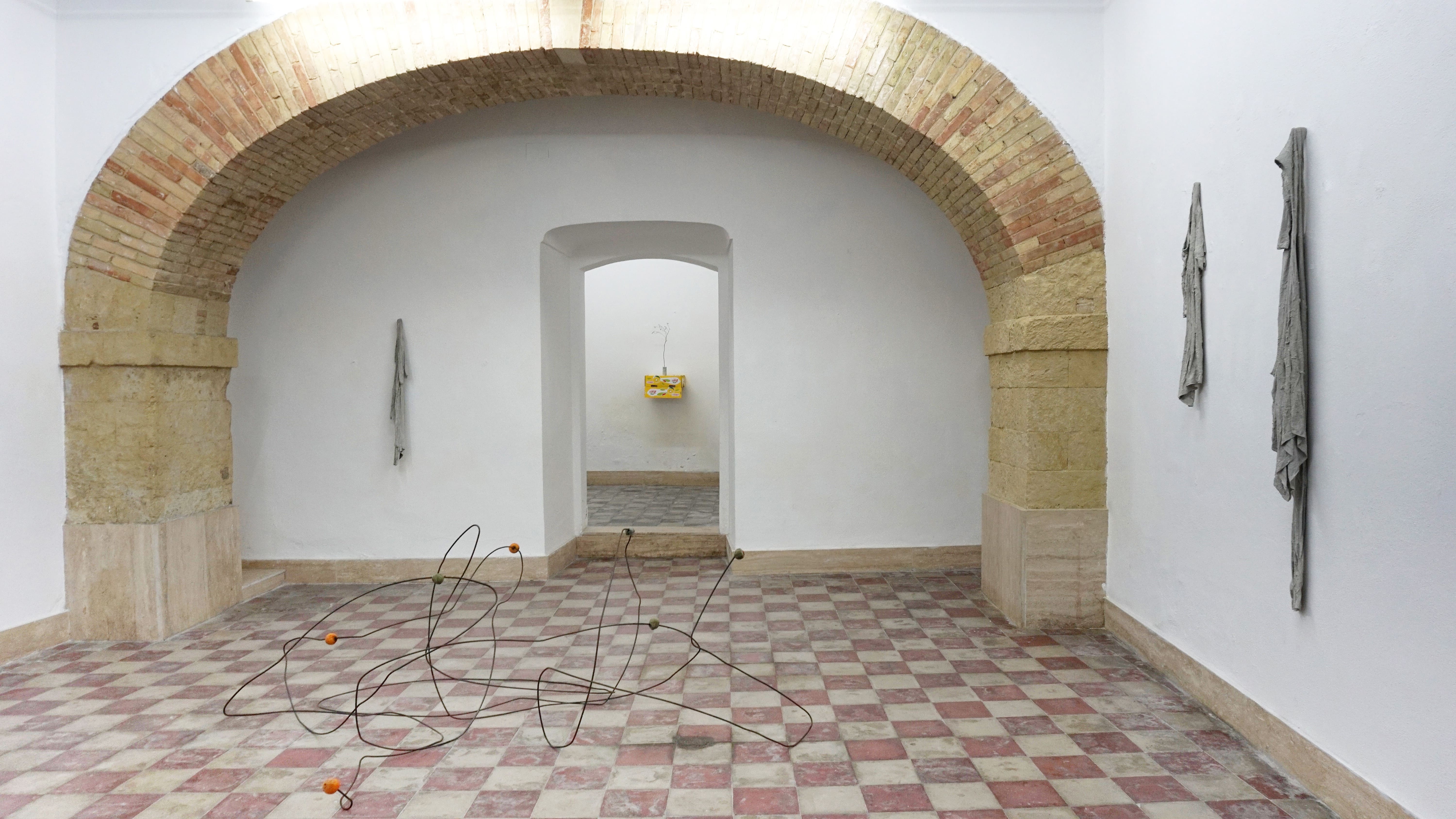 Approdata a Cagliari, l’arte di Bará ha modo di comunicare con le stratificazioni del tempo nell’architettura dove si colloca la Galleria Macca, quella di Palazzo Amat di San Filippo, realizzato nel XVIII secolo con rifacimenti successivi. Opere come l’installazione Architecture of Defeat paiono trasmettere il senso del tempo in ciò che è organico e in ciò che non lo è: le arance, in parte già ammuffite, con la loro buccia così simile alla pelle umana soggetta al deperimento del tempo, si innestano in strutture tortuose e imperiture. Materiali che acquistano calore, trasformandosi in forme di vita vegetali, come in Zespri. Negli Untitled, il cemento cristallizza le vesti che fin da bambino Bará vedeva appese nei cantieri, perché gli operai potessero cambiarsi sul posto: oggetti sospesi in un limbo, cristallizzati, come coloro che gli indossano, la cui vita dovrebbe essere, invece, centrale nel destino dell’architettura.