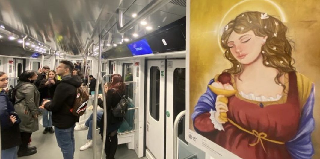 Fino al 28 Febbraio 2025 la metropolitana di Catania diventa teatro artistico d’esposizione dei 41 manifesti ispirati al culto e all’iconografia della patrona della città realizzati, in digitale e artigianalmente con l’inchiostro di china, dagli studenti e dalle studentesse del corso di laurea di Grafica, Illustrazione e Fumetto con gli studenti del corso di Design della Comunicazione Visiva dell’Accademia di Belle Arti di Catania che si sono cimentati con la tipografia. Ogni lavoro rispecchia il personale bagaglio culturale e formativo degli artisti. che lascia, così, al popolo della metro, la propria interpretazione e ispirazione della patrona.