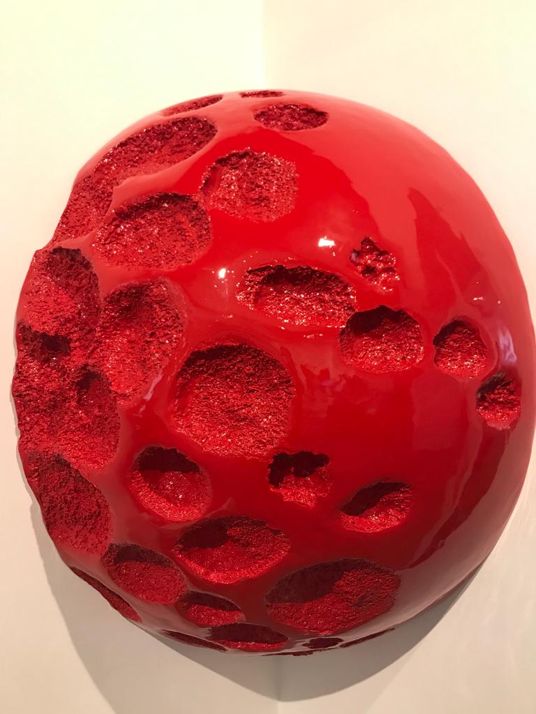 Se la forma è il limite visibile che si dà alle cose per nominarle, la macchia è il sintomo della natura sostanziale della materia, il magma primigenio che le abita dall’interno. Il passaggio dalla forma alla sostanza è reso possibile, oltre che da un’apertura concreta e metaforica, anche da una conciliazione delle opposizioni, che Beatrice Gallori sviluppa in tutto il percorso espositivo. Così come in “Cell-Code”, sulla cui superficie specchiante e convessa si aprono delle concavità dalla porosità inaspettata.