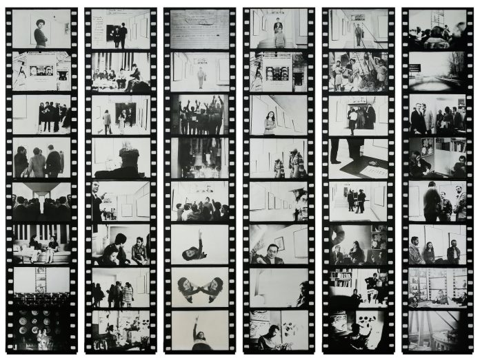 Certo, questo lavoro pone sotto la lente dell’analisi il comportamento del pubblico durante una sua mostra, ma è senza dubbio sintomatico di come la ripetizione sia un elemento distintivo della pratica dell’artista, una ripetizione differenziata che dimostra la variabilità del reale provocata dal tempo. Ma come si differenzia una ripetizione? Tagliaferro lavorava anche sulla frammentazione dell’immagine, sulla sua serializzazione o duplicazione, rientrando appieno con la sua ricerca nel panorama delle avanguardie degli anni ’60 e ‘70. In questo senso, è emblematico il ciclo Io-ritratto, altra opera iconica presente nel percorso espositivo. Intenzionato ad analizzare il proprio Io. L’artista mette in discussione la propria immagine, usando come valori il positivo e il negativo: ripetendo in maniera calibrata la sua immagine frontale. Il suo negativo e l’immagine della sua nuca, Tagliaferro riesce così a evidenziare la mutabilità del rapporto che egli ha con il suo Io, rendendo di fatto manifesto il carattere ossessivo di guardarsi allo specchio.