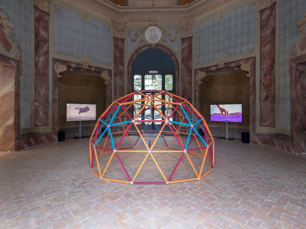 La Palazzina dei Giardini ospita invece “Loops & Vectors”, la prima mostra personale in un’istituzione museale del collettivo artistico IOCOSE, a cura di Francesca Lazzarini e Daniele De Luigi. Il collettivo ha raccolto per l’occasione una serie di opere realizzate nell’ultimo decennio che come spiega la curatrice “sono variamente informate da questi due diversi tipi di movimento: da un lato il loop, la circolarità, che può essere intesa in un’ampia varietà di accezioni, dalla ripetizione fino a un modello di tempo alternativo a quello lineare; dall’altra il vettore, una linea che indica direzione e movimento, anch’essa soggetta a interpretazioni multiple: dallo scarto sino alla linea di fuga”.