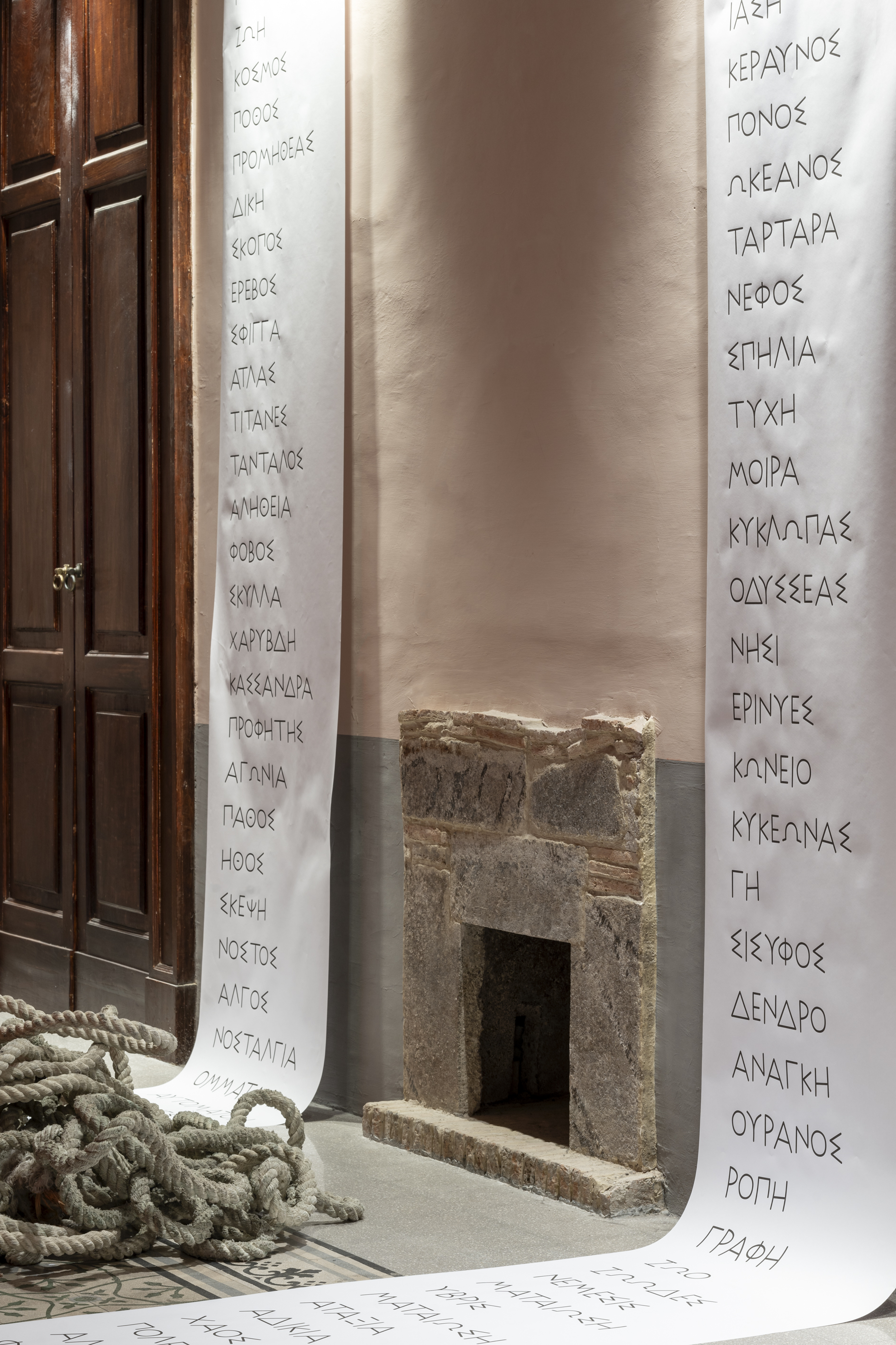 Lo studio dell’artista, ricreato come laboratorio febbrile di appunti, calchi, parole in greco antico ed ex voto contemporanei, diventa il cuore pulsante di un processo che accetta il caos come condizione generativa, in linea con una concezione dell’opera d’arte come apertura all’a-venire, citando il testo curatoriale di Claudia Gioia.