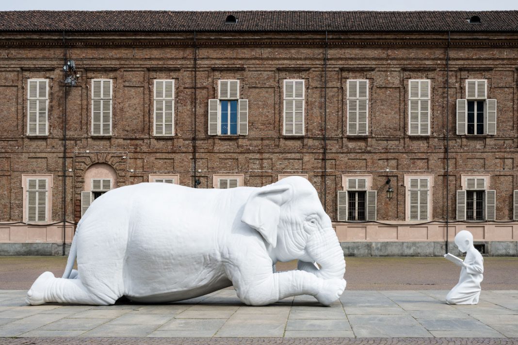 L’allestimento nella cornice della residenza storica trasforma il museo in un luogo di meraviglia e di conoscenza, nel quale il pubblico è chiamato a muoversi alla scoperta delle opere degli artisti del nostro tempo o del recente passato. Il percorso infatti, conta oltre 25 installazioni e si snoda in parte nei Giardini Reali, elemento fondante dell’identità dei Musei Reali, per poi svilupparsi anche tra le sale di Palazzo Reale, dell’Armeria e della Galleria Sabauda, dove il pubblico può scoprire le insospettabili connessioni che legano le sculture contemporanee agli animali raffigurati nelle collezioni.