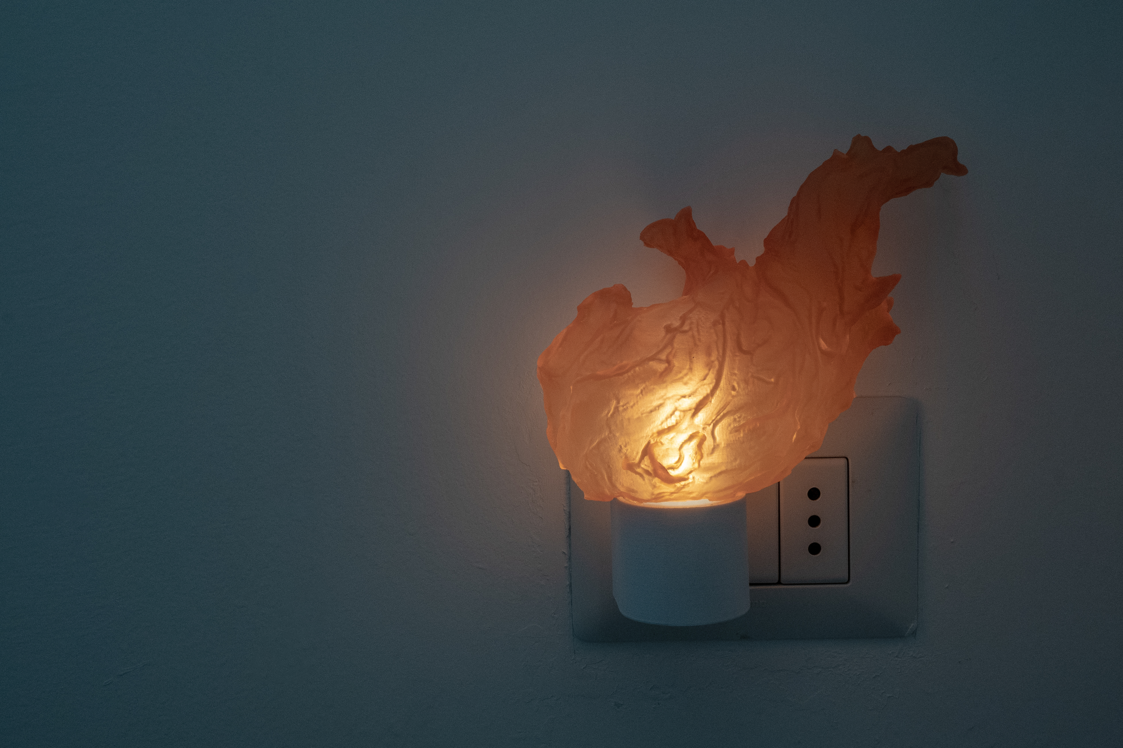 Anche Giuseppe Di Liberto affronta il tema della soglia ma lo fa con un linguaggio rituale e funebre. L’opera, dal titolo Quando una stella muore, omaggio alla notte o Morte a Venezia (2025), è composta da tre fiaccole, totem spirituali che mappano le torce votive del cimitero di San Michele a Venezia. Realizzate in resina stampata in 3D, si ispirano alle luci tremolanti della laguna e assumono la forma di piccole sculture, inoltre continuano a illuminare IUNO anche dopo l’orario di chiusura, prolungando la vita della mostra oltre la presenza fisica del pubblico.