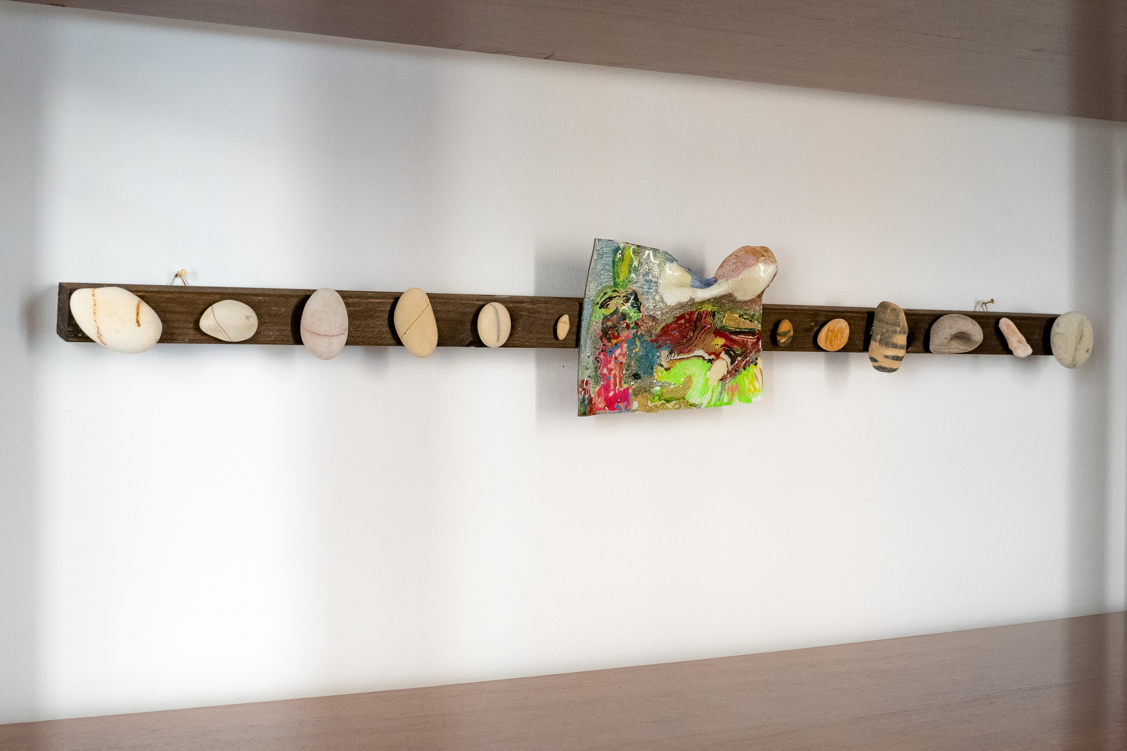 Birichino, infatti, si adatta e si modifica in relazione allo spazio in cui viene collocato ed esprime quella tendenza profondamente umana a replicare forme tratte dal mondo naturale. Ne risulta una figura (anche qui) “ambigua”, sospesa tra infanzia, ritualità e alterità, che non rimanda tanto a una memoria individuale, quanto a una memoria sedimentata, capace di evocare l’arcaico in uno spazio contemporaneo come il salotto di un appartamento; non è solo un mutaforme, o contenitore di infiniti significati, è anche la componente allegorica più potente della mostra. Birichino ha una forma, ma potrebbe averne altre mille.