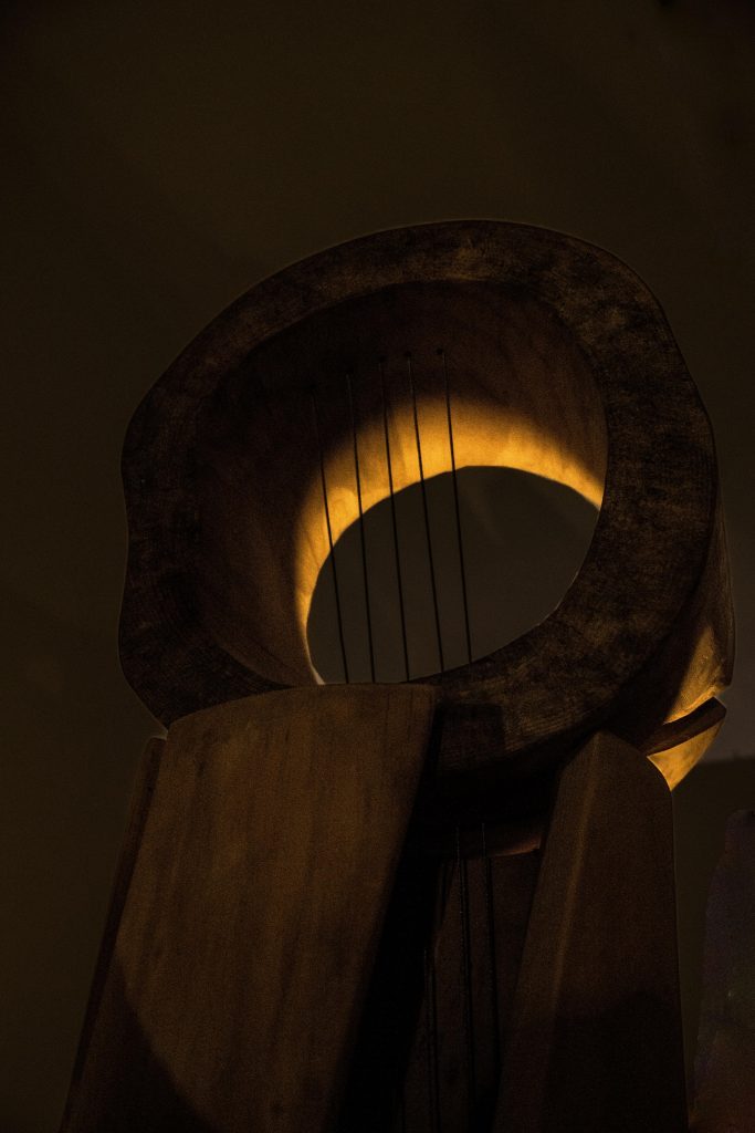 Sia le opere sia gli strumenti, prelevati direttamente dallo studio di Martellotti, cessano di essere mezzi della creazione o suoi esiti e si trasformano in qualcos’altro. Sottratti alla loro condizione di quiete, vengono riattivati in una nuova funzione: non più strumenti operativi né oggetti conclusi, ma elementi che, anche se immobili, contribuiscono a definire una soglia che, tuttavia, non separa in modo netto e invalicabile, ma piuttosto distingue due dimensioni che coesistono nella figura dell’artista: da un lato quella quotidiana, legata al tempo ordinario, all’esperienza concreta, agli incontri e alle difficoltà di tutti i giorni; dall’altro quella artistica, in cui tali elementi ed esperienze vengono rielaborati e cristallizzati dando vita ad un nuovo linguaggio.