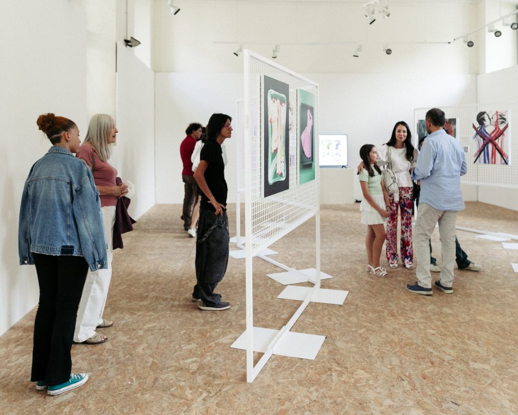 Si tratta di una mostra di sperimentazione perché, con la curiosità di chi scopre qualcosa di nuovo e vuole imparare a farlo funzionare, gli artisti e gli alunni coinvolti hanno esposto il risultato del loro giocare con questi strumenti innovativi che sono le Intelligenze Artificiali, o meglio, le reti neurali che generano immagini. Hanno testato le I.A. come se fossero un caleidoscopio con tantissimi vetrini colorati: lo hanno mosso lentamente, scosso, hanno aggiunto nuove piastrine, nuovi dati e hanno osservato, selezionandole, le disposizioni e le forme che si creavano autonomamente.