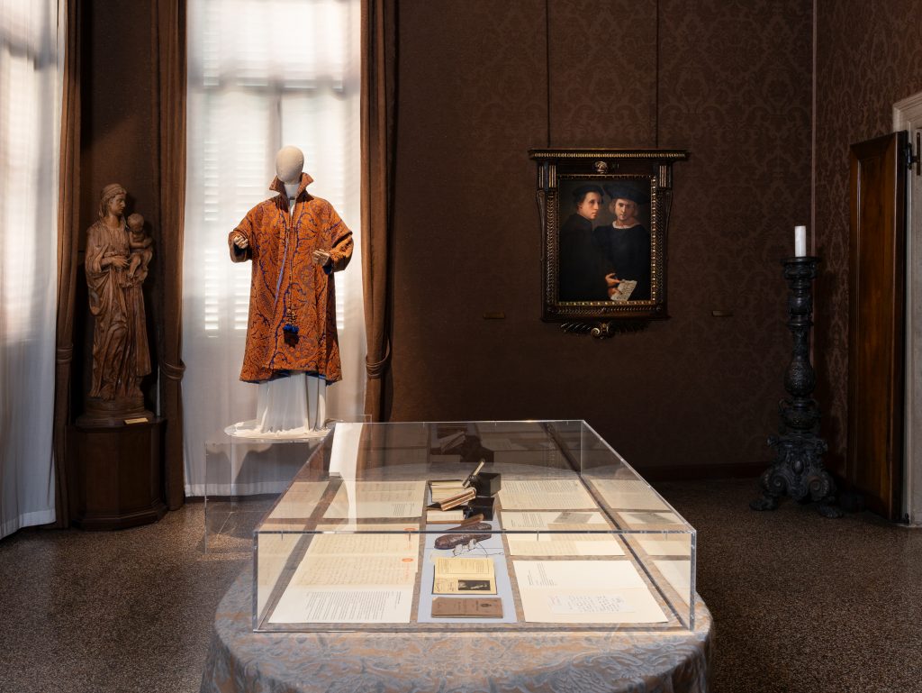 E proprio da questo archivio sono stati selezionati i documenti più interessanti, le stoffe più pregiate, in mostra ora e fino al 13 ottobre 2024 presso la galleria di Palazzo Cini, per un’imponente mostra realizzata in collaborazione con la ditta Fortuny e che costituisce l’ultimo prodotto dell’Istituto per il Teatro e per il Melodramma, il quale studia la Duse già a partire del 2000.