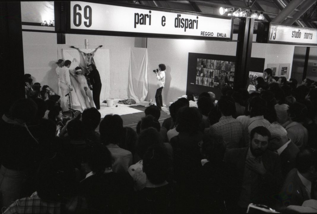 Dopo l’edizione pilota del ’74, dove comunque seppur non dal vivo la performance era presente, nel 1976 ad Arte Fiera la Galleria Pari&Dispari insieme allo Studio Morra e la Galleria del Cavallino con la Ronald Feldman Fine Arts diedero vita a due programmi di performance, che si svolgevano quotidianamente per l’intera durata della fiera.