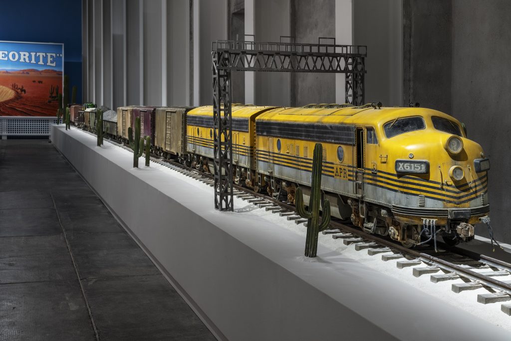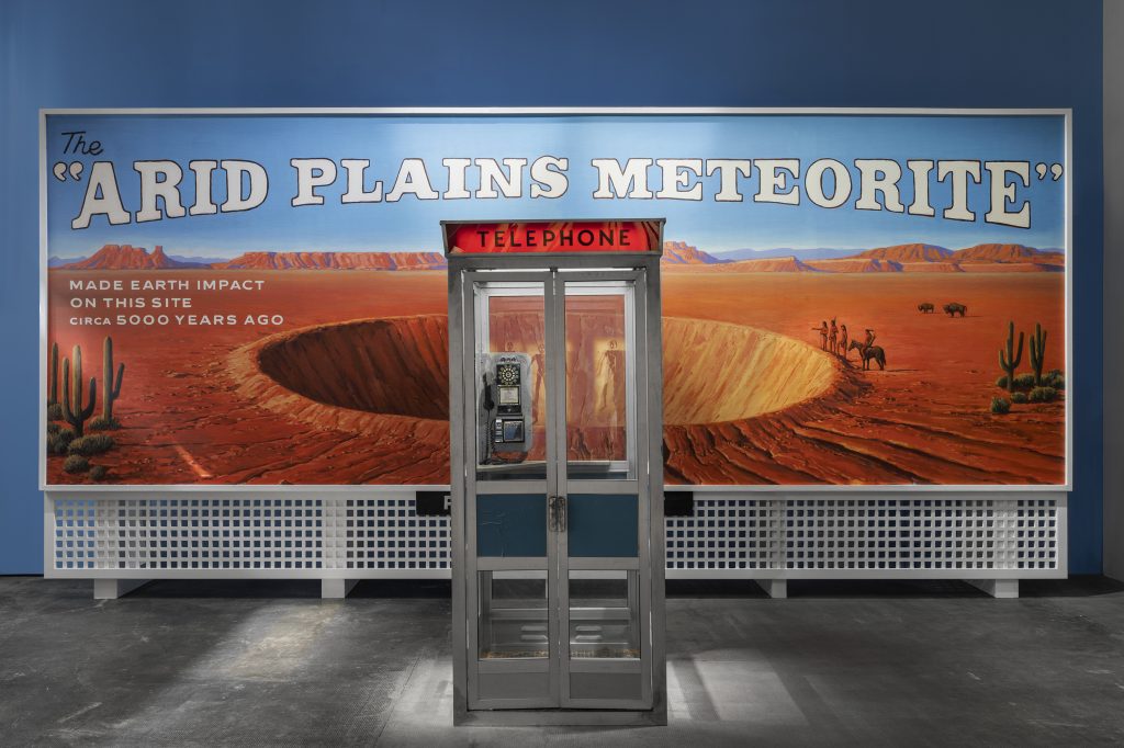 L’idea della mostra nasce durante il mese di luglio, in concomitanza con la scelta di proiettare nel Cinema Godard di Fondazione Prada l’anteprima di Asteroid City. Le diverse sezioni dell’esposizione, accompagnate ognuna da una traccia audio che richiama le scene specifiche del film, sono arricchite dalle scenografie e dagli oggetti usati sul set, a cui è stata data una seconda vita all’interno delle installazioni. Peculiare è l’attenzione ai dettagli minuziosamente dipinti a mano dal team internazionale, che segue il regista durante le riprese dei diversi film, ed esposti in mostra. Pacchetti di sigarette, mappe, opuscoli, insegne, confezioni di gomme da masticare, persino i pupazzi mossi in stop motion, nati grazie ad Andy Gent, già noto per i suoi interventi in Fantastic Mr Fox (2009) e L’isola dei cani (2018). In mostra anche i costumi originali indossati dagli attori durante le riprese, disegnati da Milena Canonero che collabora da anni con Anderson, il modellino del treno merci e la cabina telefonica. Per tutta la durata dell’esposizione anche un nuovo drink, l’Asteroid Martini, nato da un’idea di Wes Anderson e del Bar Luce, che rende omaggio al distributore di cocktail, installato nella prima sala della galleria Nord.