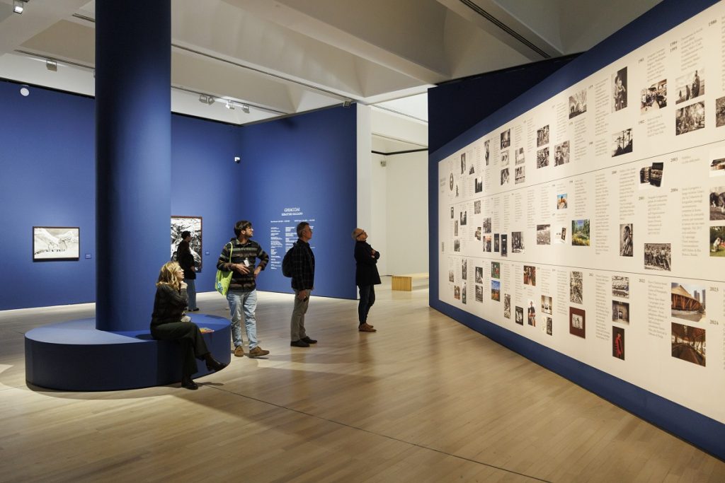 Se al MUSE di Trento una serie di immagini scattate nel Parco nazionale e riserva di Kluane fluttua nel “Grande Vuoto” progettato da Renzo Piano, al Mart di Rovereto si concentra il nucleo principale dell’esposizione. Più di cinquanta opere, accompagnate da una sala video che propone film e documentari sul tema della crisi glaciale, costruiscono un percorso visivo austero, ma travolgente. Le fotografie, solo apparentemente in bianco e nero, sono attraversate da sfumature seppiate che si riflettono anche nelle cornici marroni, come fossero le assi di una zattera di salvataggio. L’uso cromatico e una resa fotografica pittorica, quasi con una grana puntinata, suggeriscono il malessere sottile dei Ghiacciai, in posa nella loro ultima scena.