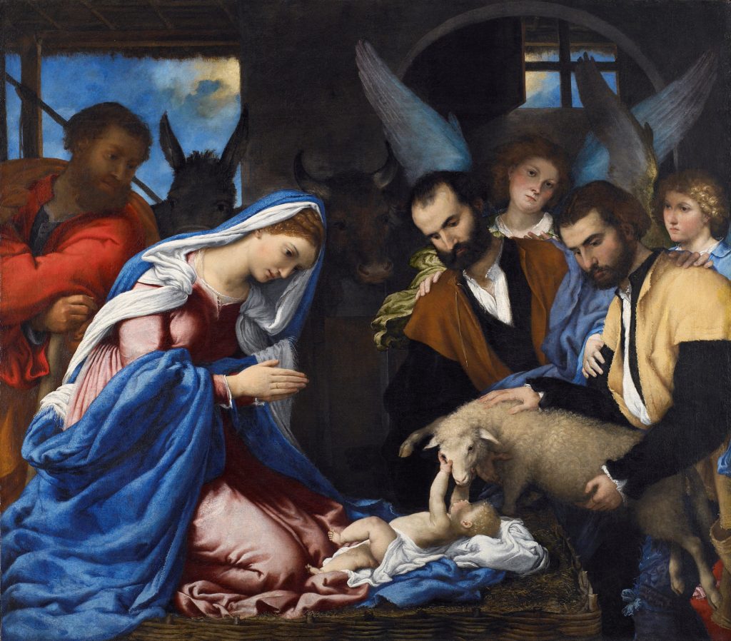 Si tratta della Adorazione dei pastori del 1530 (della Pinacoteca Tosio Martinengo) e delle opere in esposizione temporanea: la Natività del 1525 (Pinacoteca Nazionale di Siena), il dittico Angelo annunciante e Vergine annunciata del 1526 (Pinacoteca Comunale di Jesi), la grande pala de I santi Rocco, Cristoforo e Sebastiano del 1533-1535 (Basilica della Santa Casa di Loreto).
