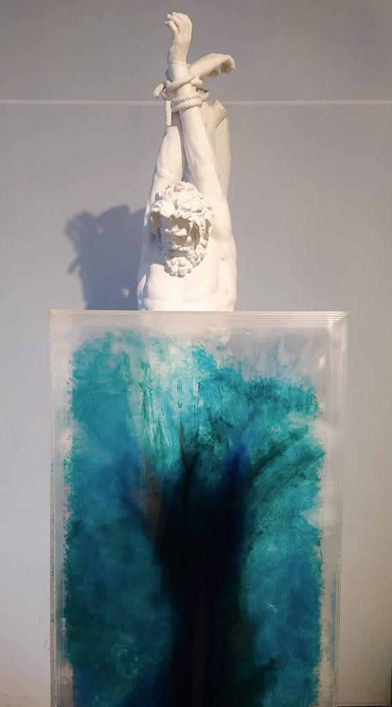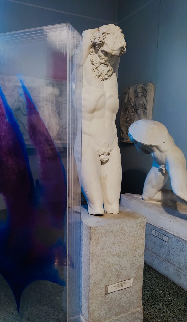A concludere il percorso, sei grandi sculture in metacrilato composte di lastre colorate sovrapposte le cui forme richiamano i gessi circostanti. Movimenti sui toni del verde, del blu e del viola che fanno da specchio al bianco puro della statuaria classica. Quel bianco che, come raccontava in un colloquio con Marisa Volpi, Bruno Lisi voleva «distruggere e ottenerne un altro che ne contenesse l’eco e che rimandasse a un’ambiguità di lettura in tutti i sensi».