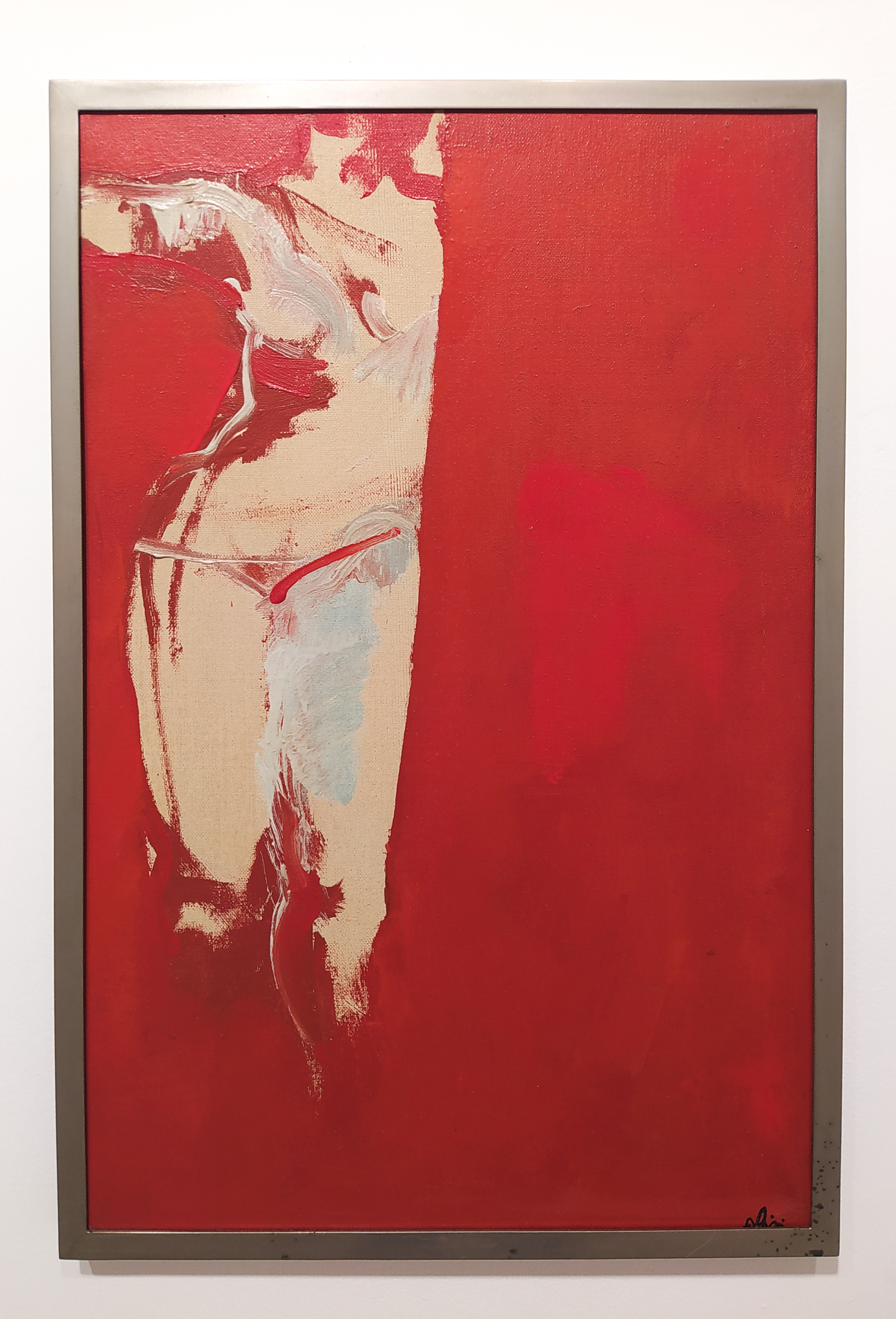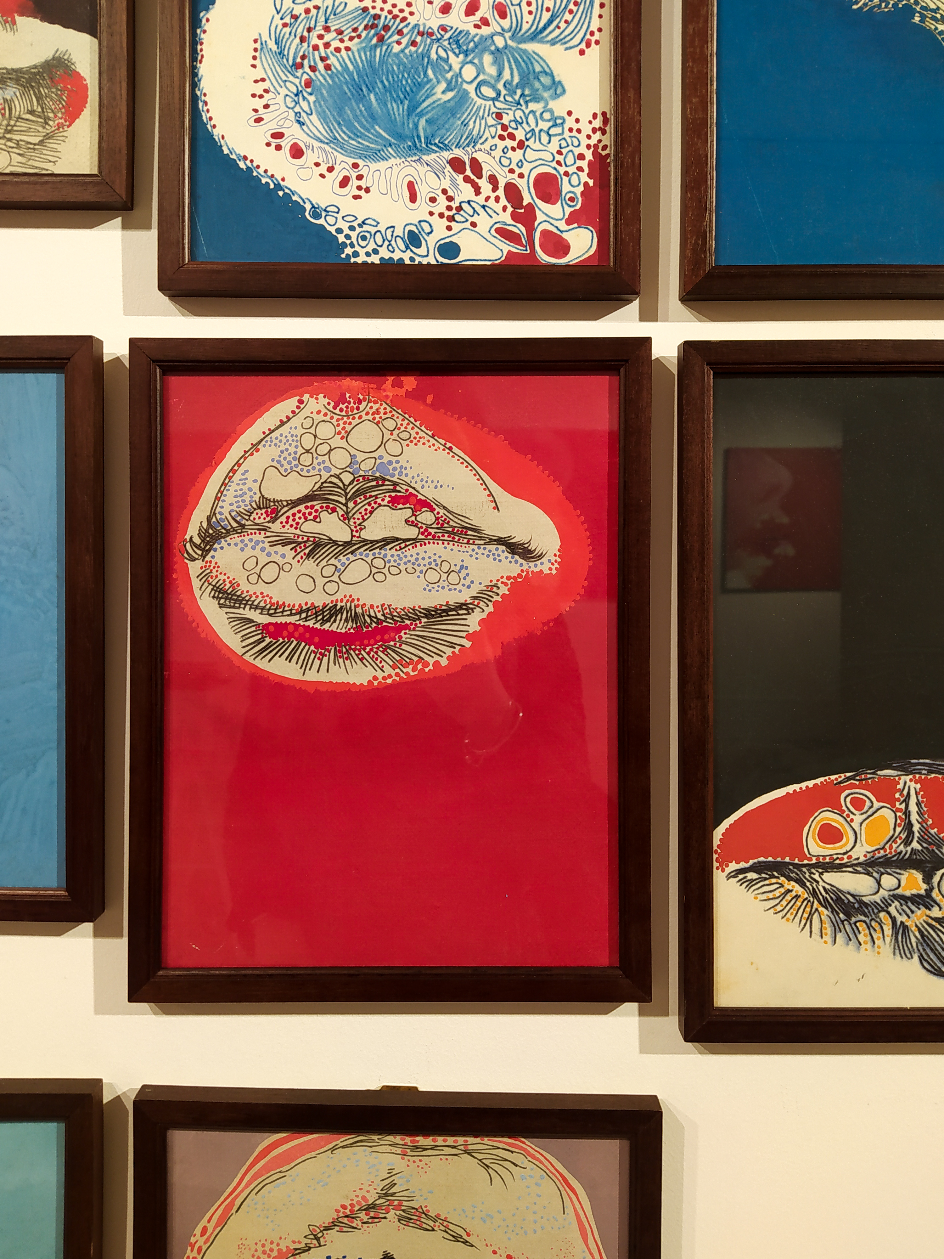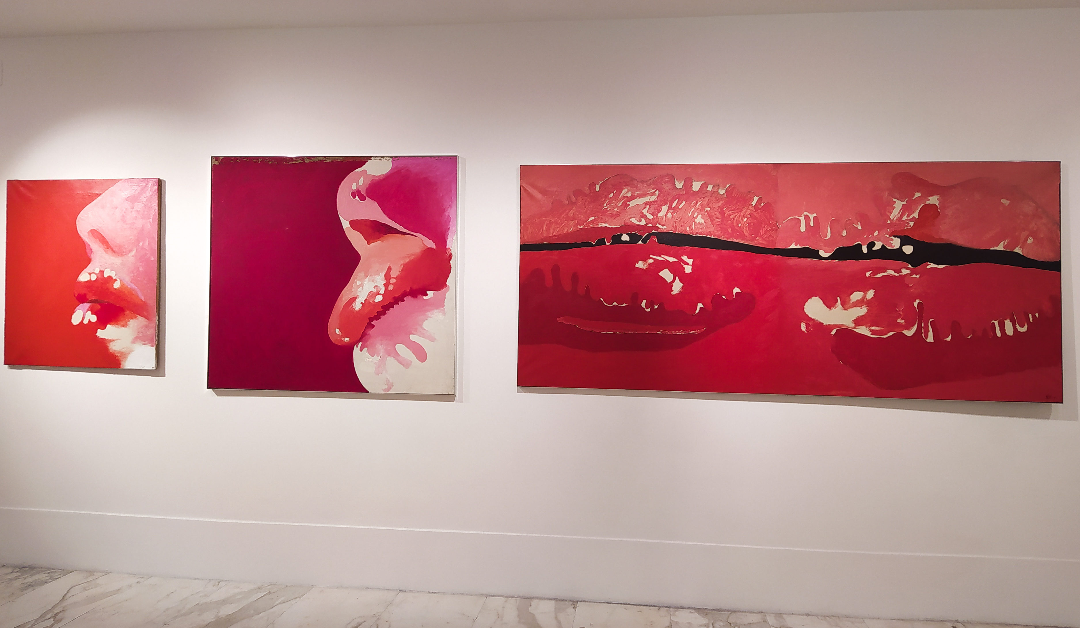 Al MLAC è riunita una serie di opere dell’artista romano che narra tutto il suo percorso creativo, dal primissimo olio su tela del ’58 agli ultimi lavori del 2011-2012. Prediligendo il linguaggio pittorico, Bruno Lisi rimane legato al figurativo durante i primi anni della sua produzione artistica. Infatti, aprono l’esposizione linee curve e dritte, forme ovali e sagome che ricordano la morfologia cellulare, richiamata anche dagli stessi titoli scelti per opere come Virus II o Metamorfosi virus del 1972. Questi lavori precedono i dipinti dai toni più vivaci che ritraggono i dettagli del corpo femminile: quando schizzato a matita su carta, quando sezionato nei particolari ingranditi delle bocche e degli occhi, con uno zoom dai colori squillanti.