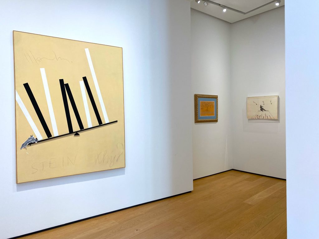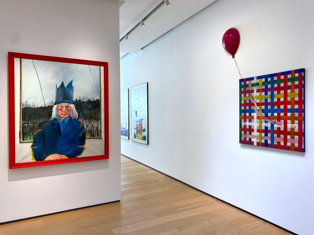 Nello stesso piano Fiz, in accordo con l’Archivio, sceglie di esporre anche la serie dei Palloncini (1965-1972). Al di là dei riferimenti delle tre opere – Giulio Paolini, Dorazio e la Pop Art – Mondino dà al palloncino un significato di libertà assoluta, inscrivendo la pittura nel segno della leggerezza e della romanticità. Due grandi autoritratti sono centrali nell’allestimento. L’uno, Mon Dine, incrocia l’immagine di Jim Dine, l’altro Stoltezza Giovanile, appartiene alla serie dei 12 King che Mondino realizzò nel 1969, uno per mese, dialogando con la sacralità orientale dei Ching e recuperando la pittura con una forma di convenzionalità esplicita. A completare il piano l’effimera Untitled (Piscina di Marshmallow) in cui il naufragar è dolce. Composta da un mosaico di marshmallow dal profumo dolce e inebriante, l’opera invita a immergersi pur essendo priva di una via d’accesso e di uscita, poiché la scaletta è posizionata troppo in alto.