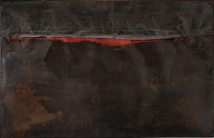 Il dialogo che Sgarbi analizza tra Caravaggio e Burri, invece, si individua sul piano formale: nella parte alta del quadro Seppellimento di Santa Lucia del pittore seicentesco, la quale risulta essere “identica” alla produzione dell’artista di Città di Castello. Il dramma e il vuoto che troviamo nell’opera caravaggesca lo troviamo in un monumentale Ferro SP (1961) di Burri. Ciò che unisce i due artisti è anche un soggiorno in terra sicula. Caravaggio ha dipinto Santa Lucia, Burri ha realizzato un sudario su Gibellina, il Grande Cretto (1968), presente in mostra mediante le fotografie di Massimo Siragusa.