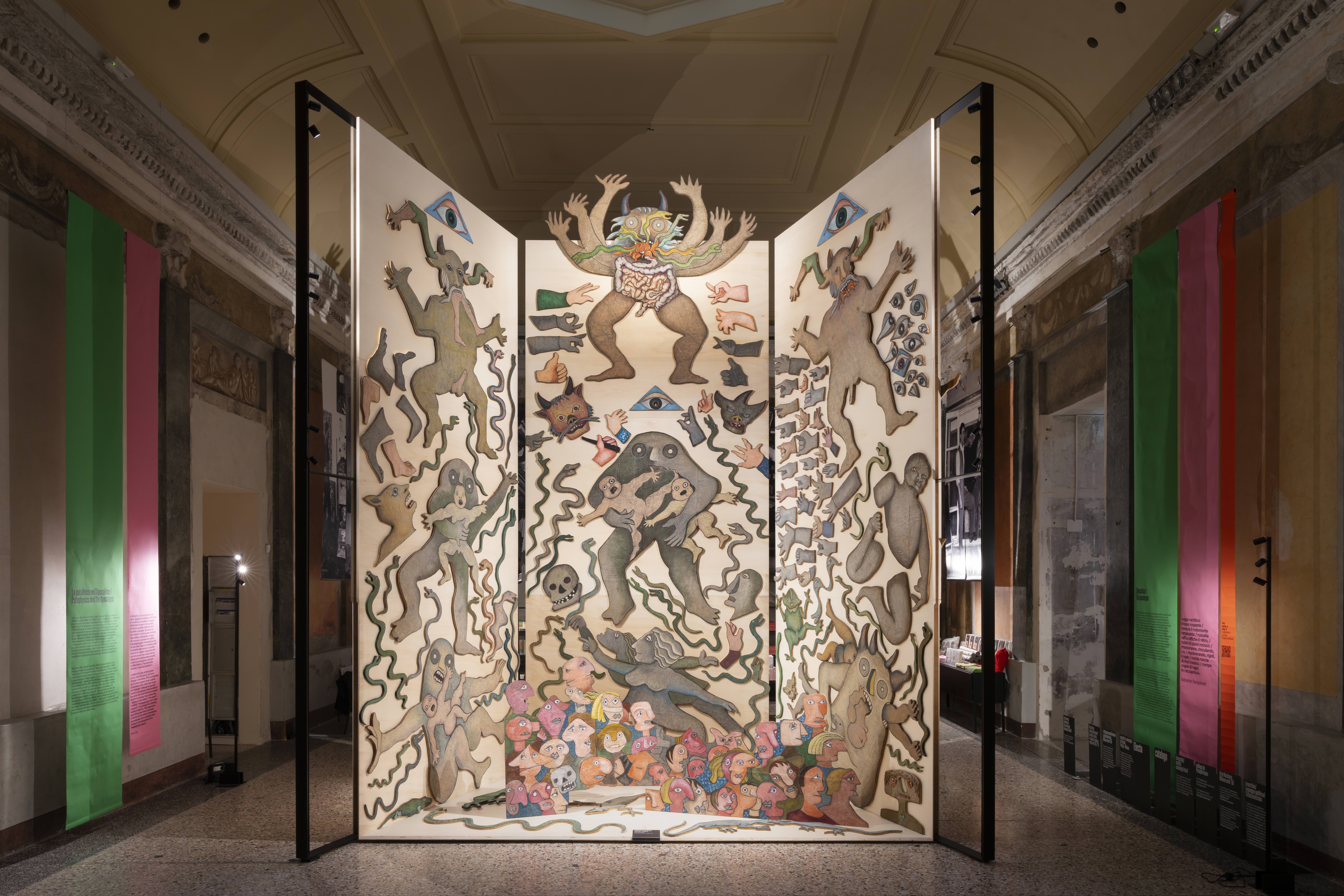 Baj, apocalisse, trae ispirazione dalle figure illustrate sul soffitto del Battistero di Firanze.