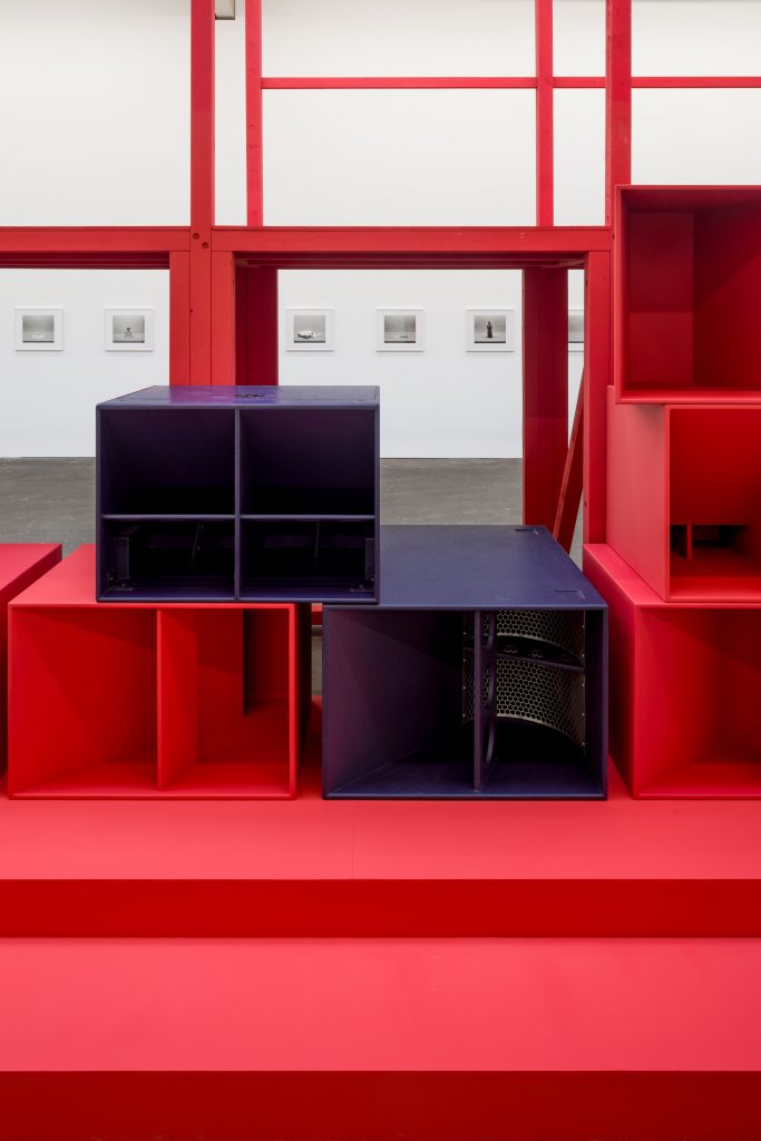 Particolarmente interessante è anche Bergama Stereo – Berlin Fragment dell’artista turco Cevdet Erek: un’installazione di un rosso acceso la cui forma si rifa all’altare di Pergamo, trasportato dall’odierna Turchia a Berlino alla fine del Diciannovesimo secolo. Erek incorpora nella scultura casse che suonano musica techno, voci inquietanti e sinfonie di tamburi provenienti dai Balcani, dalla Turchia e dal Medio Oriente. Questa stratificazione di suoni riflette su come ogni opera d’arte accumula in se numerosi e intercambiabili significati, anche in base al luogo in cui è esposta e per chi è pensata la sua fruizione. L’opera diventa così un organismo acustico e vivente, che unisce in sé geografie, storie e conflitti, restituendo all’oggetto musealizzato un corpo pulsante.