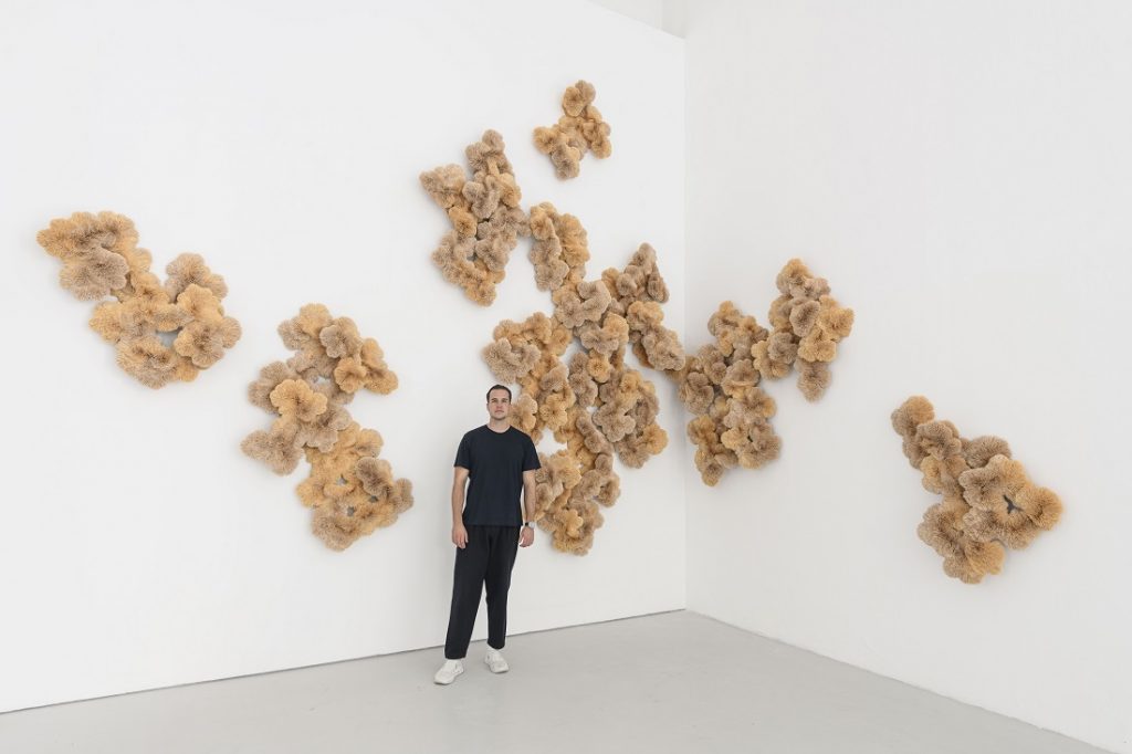 La sua pratica scultorea, acclamata a livello internazionale, si fonda su un dialogo continuo con la materialità, la percezione e il concetto di luogo. Nel suo studio di Città del Capo, Soal lavora con pazienza artigianale e lucidità concettuale, affrontando la materia come un corpo pensante, in cui ogni superficie conserva tracce di vita. La sua ricerca esplora la relazione fra l’essere umano e gli oggetti che lo circondano, ridefinendo il corpo come luogo di conoscenza e percezione. Le sue opere mirano a una poesia della semplicità, capace di interrogare le gerarchie sociali e i sistemi di valore che definiscono la nostra idea di ciò che conta e di ciò che si scarta. Nel progetto Spillovers: Notes on a Phenomenological Ecology, curato da Cesare Biasini Selvaggi e ospitato al Corner MAXXI fino al 27 novembre 2025, Soal costruisce un paesaggio di presenze silenziose. Tappi di bottiglia, stuzzicadenti difettati, fili metallici, frammenti di cemento, tondini di ferro, cavi elettrici e carta vetrata diventano materia viva, parte di un racconto sulla trasformazione e sulla dignità delle cose. L’artista lavora in simbiosi con i materiali, lasciandosi guidare dalle loro caratteristiche fisiche, e attraverso processi di aggregazione, combinazione ed erosione trasforma l’effimero in forma stabile, l’informe in linguaggio. Le sue tecniche restano un segreto custodito, come se la genesi dell’opera dovesse rimanere silenziosa. Non è un atto di chiusura, ma di rispetto: lasciare che le sculture sembrino autogenerate, nate da sé, come se la materia avesse deciso da sola la propria forma. È un gesto di fiducia verso una forza invisibile che l’artista sa riconoscere e assecondare.