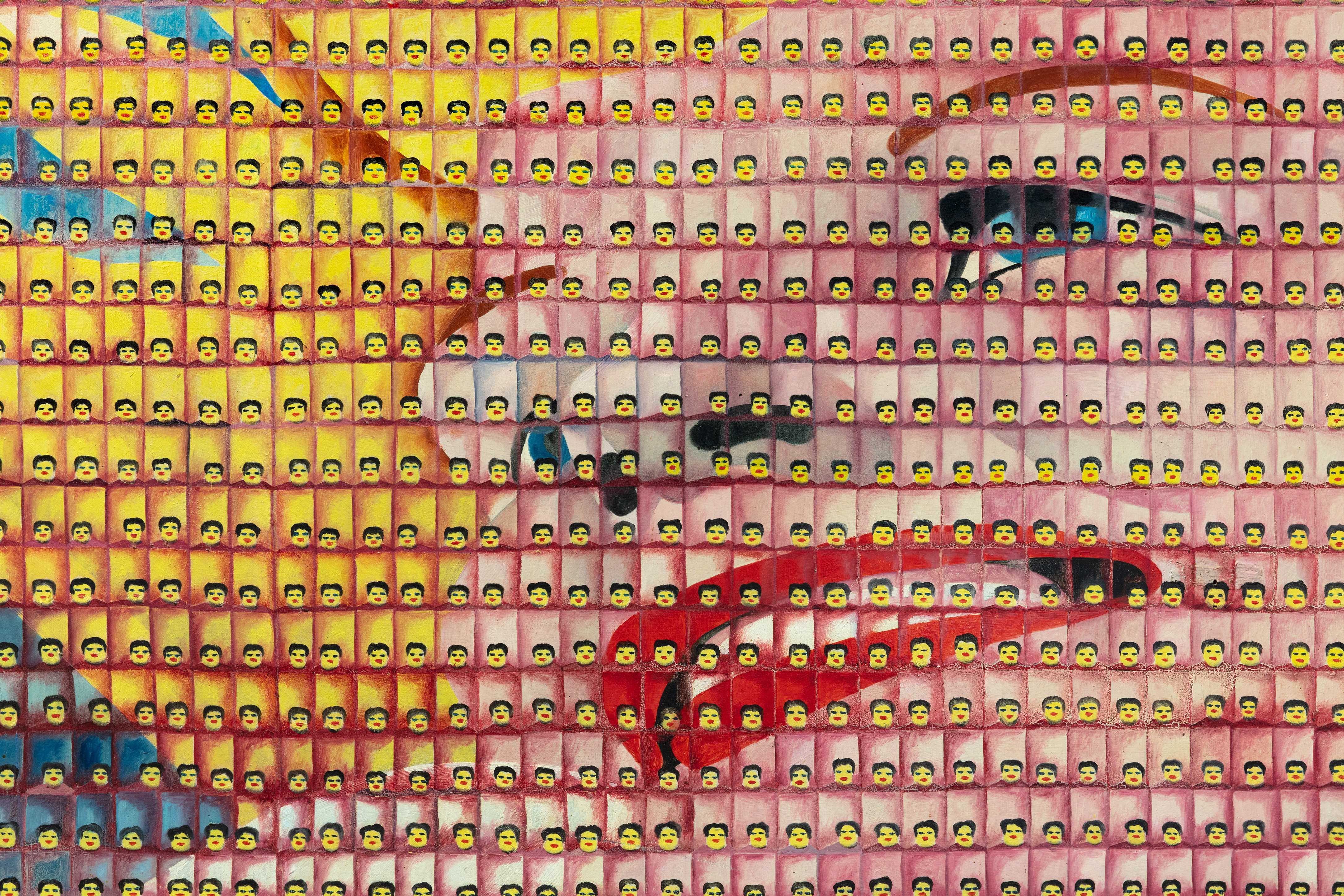Si giunge così fino all’ultima stanza, Mao and the Machine, dove è presentato uno di quadri pionieristici realizzati da Baryle negli anni Settanta in cui incrocia meccanicamente due imamgini dipinte in un opera dedicata ai processi di trasformazione della società cinese. Un coreografia di propaganda orchestrata da Mao in cui flotte di persone si muovono all’unisono.